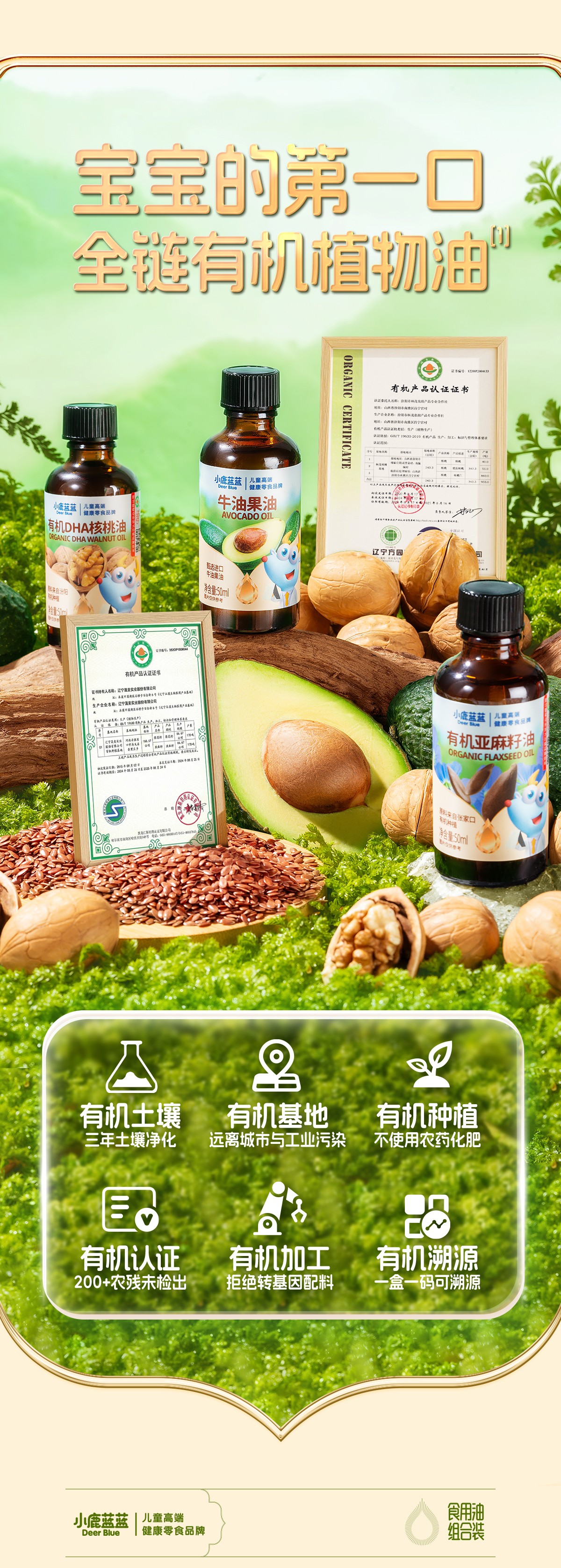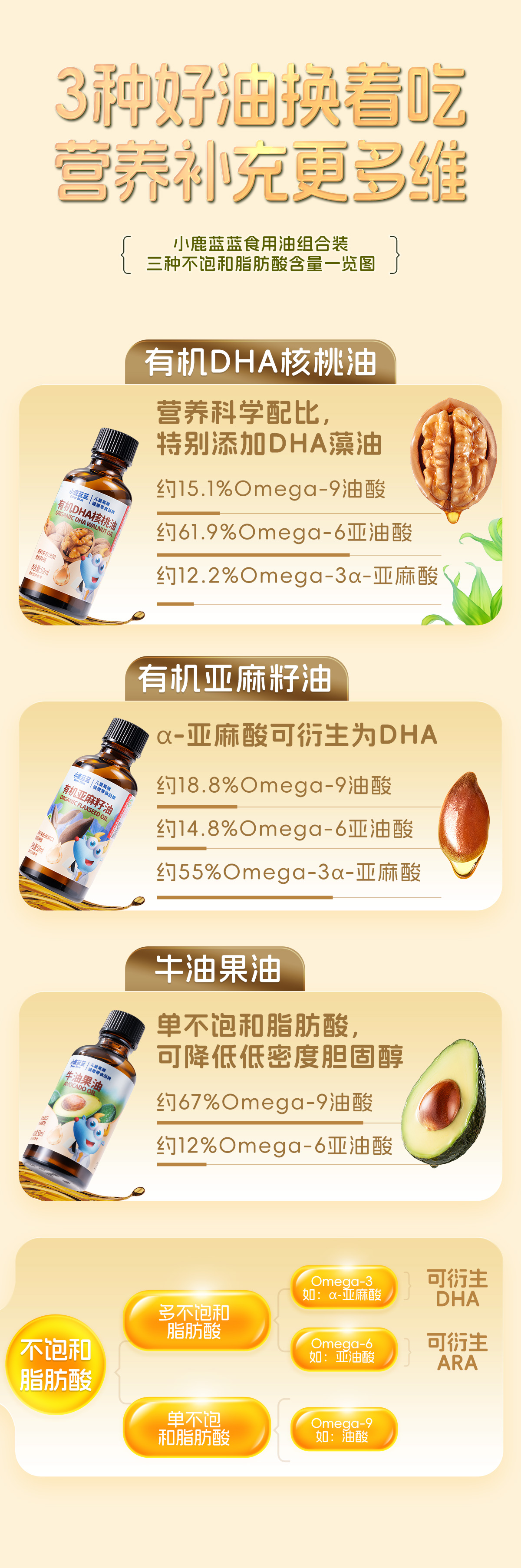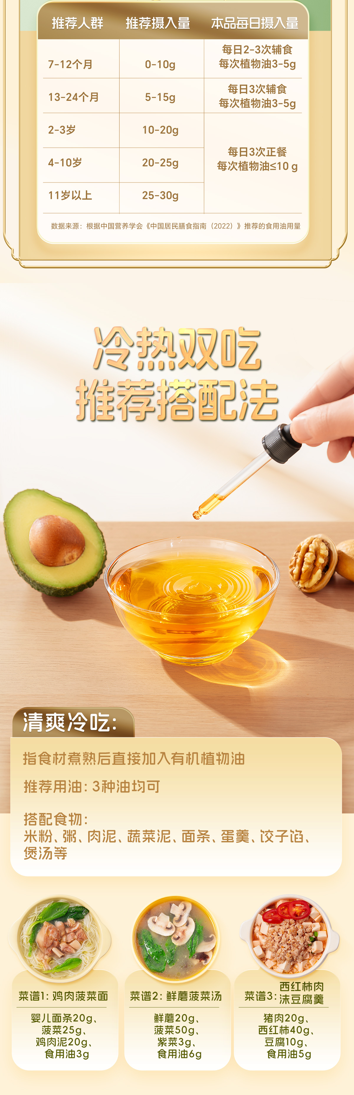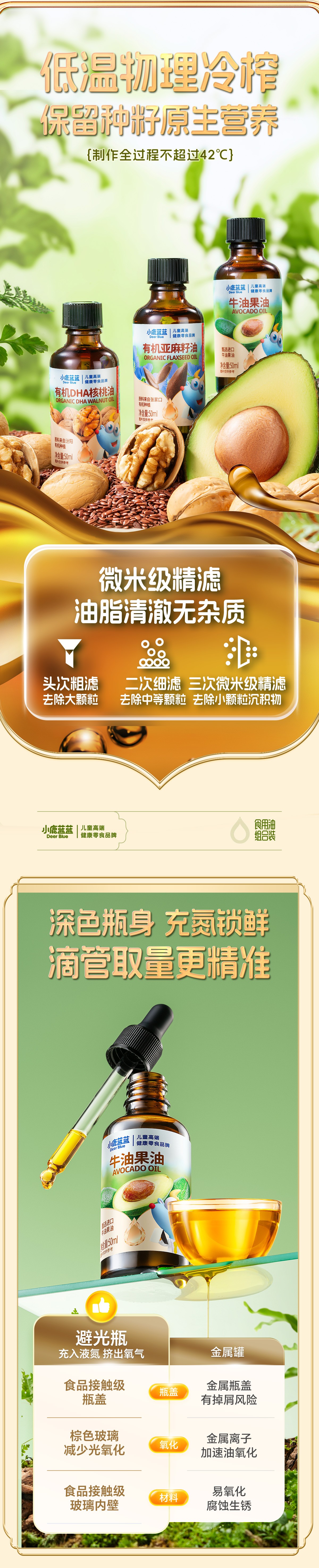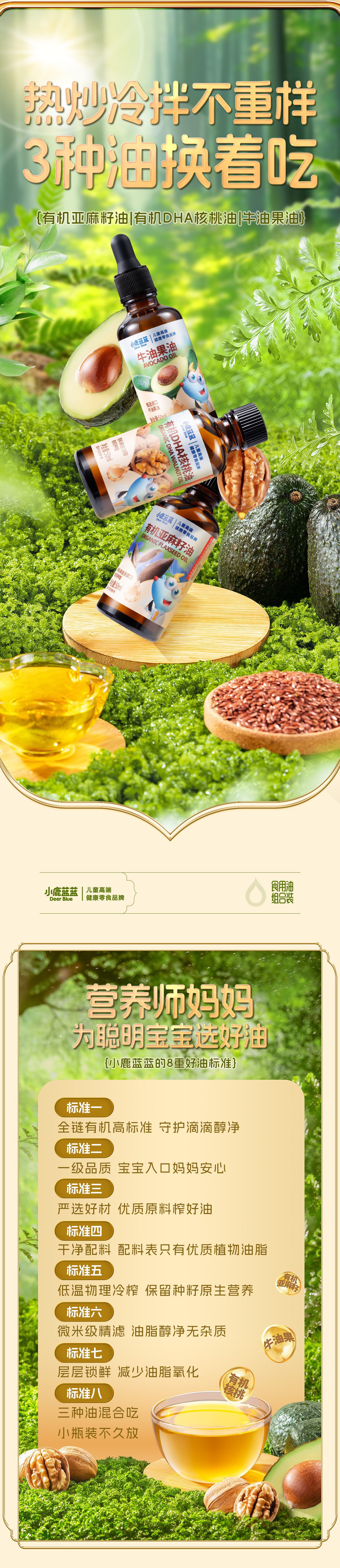 【食用油组合150ml】宝宝调味油低温压榨核桃油亚麻籽油牛油果油