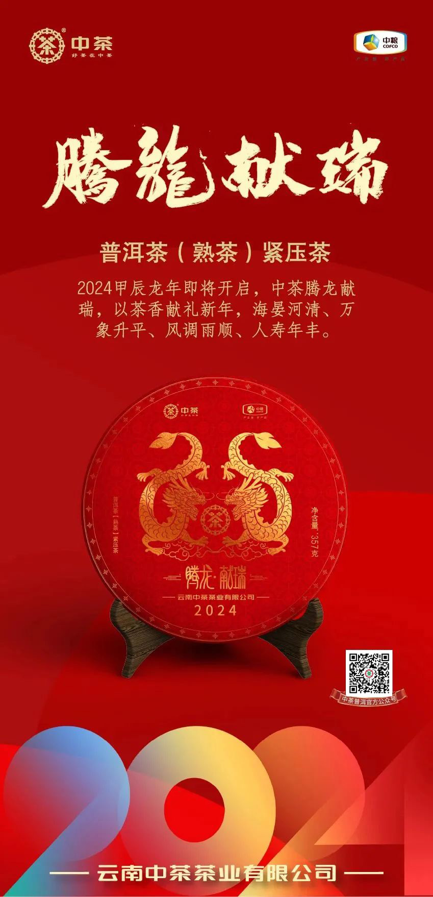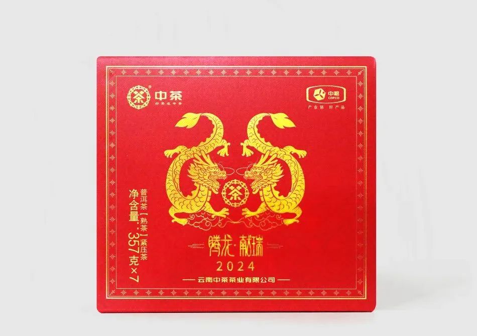 中粮-中茶 2024年中茶生肖龙年腾龙献瑞普洱茶饼熟茶357克 /云南干仓直发