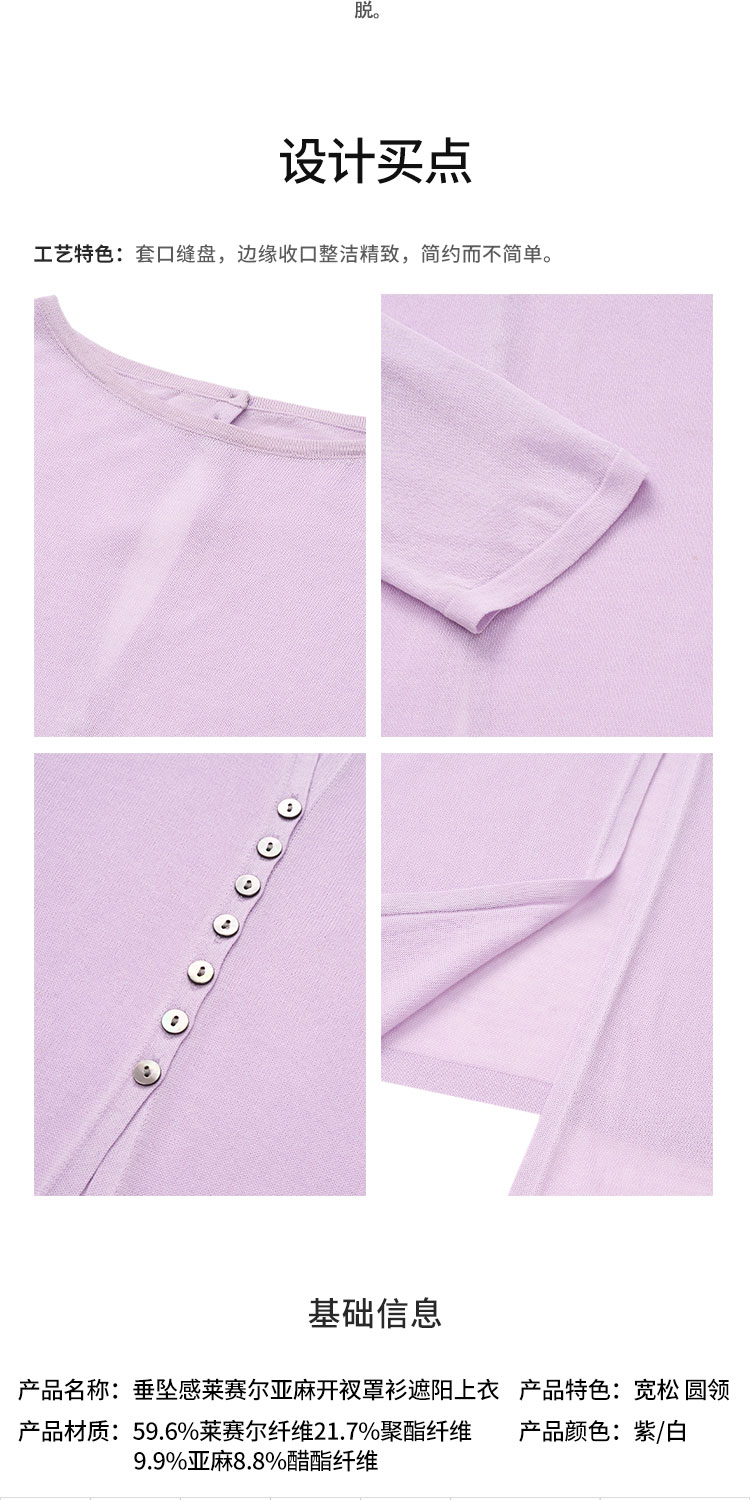 【2件9折】【Petit Bari】Petit Bari垂坠感莱赛尔亚麻开衩罩衫遮阳上衣