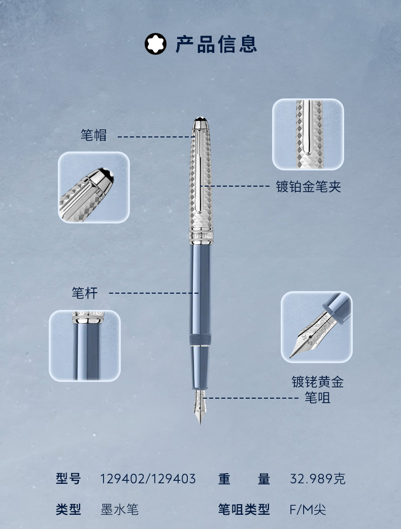 万宝龙 大班系列冰川特别款经典墨水笔冰川蓝 MB129402-F