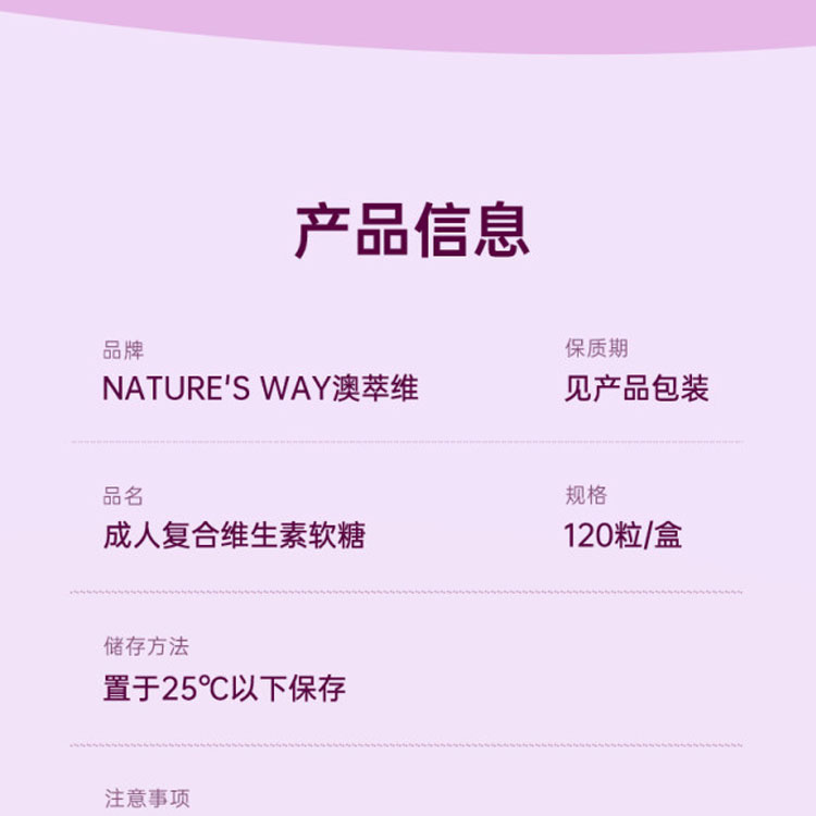 【保税仓】澳大利亚Nature's way澳萃维成人维生素软糖120粒【有效期2024年9月/10月随机】