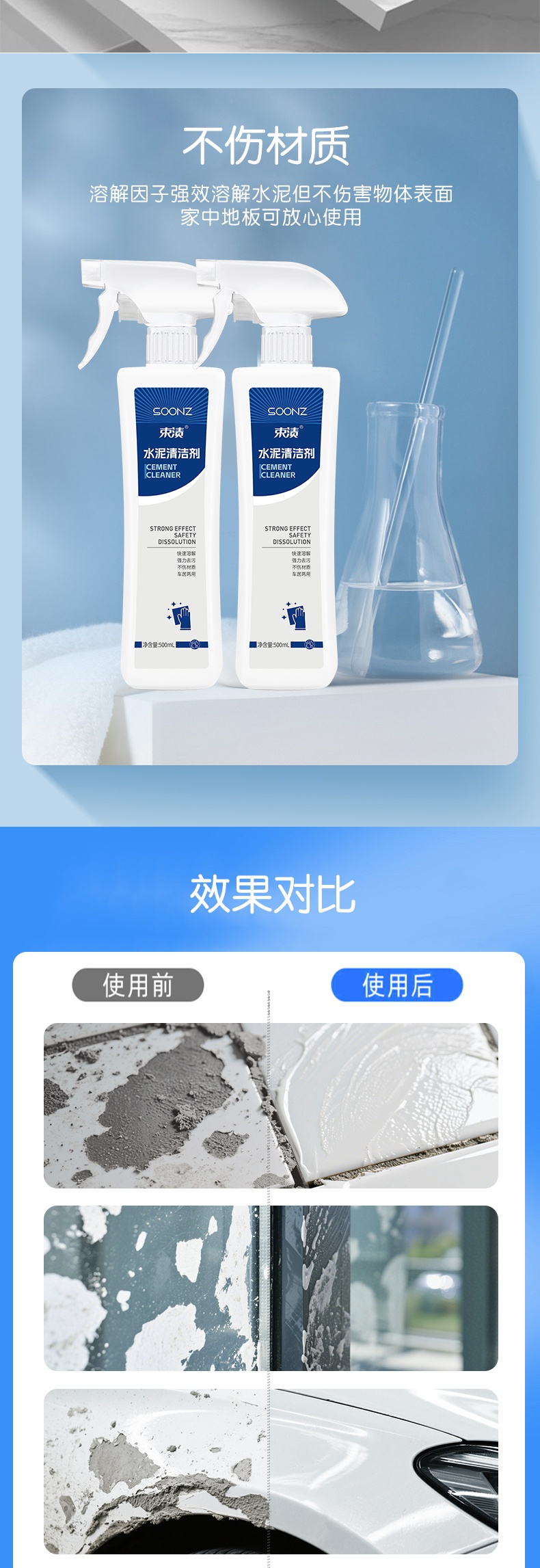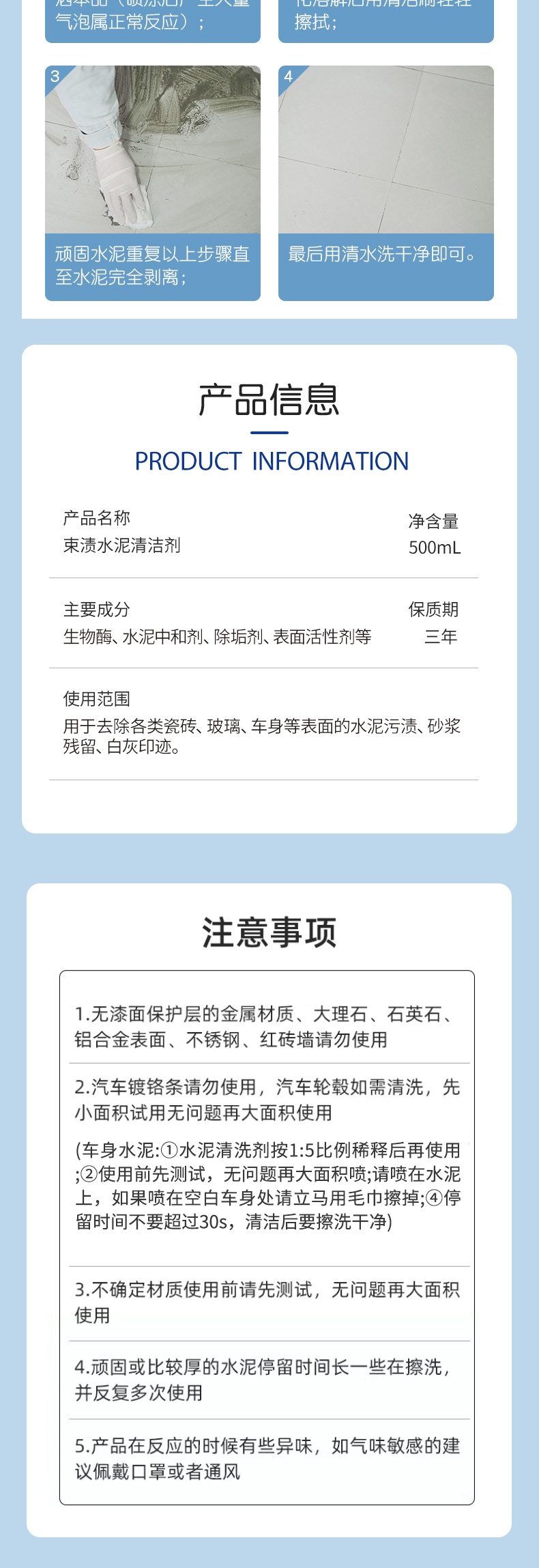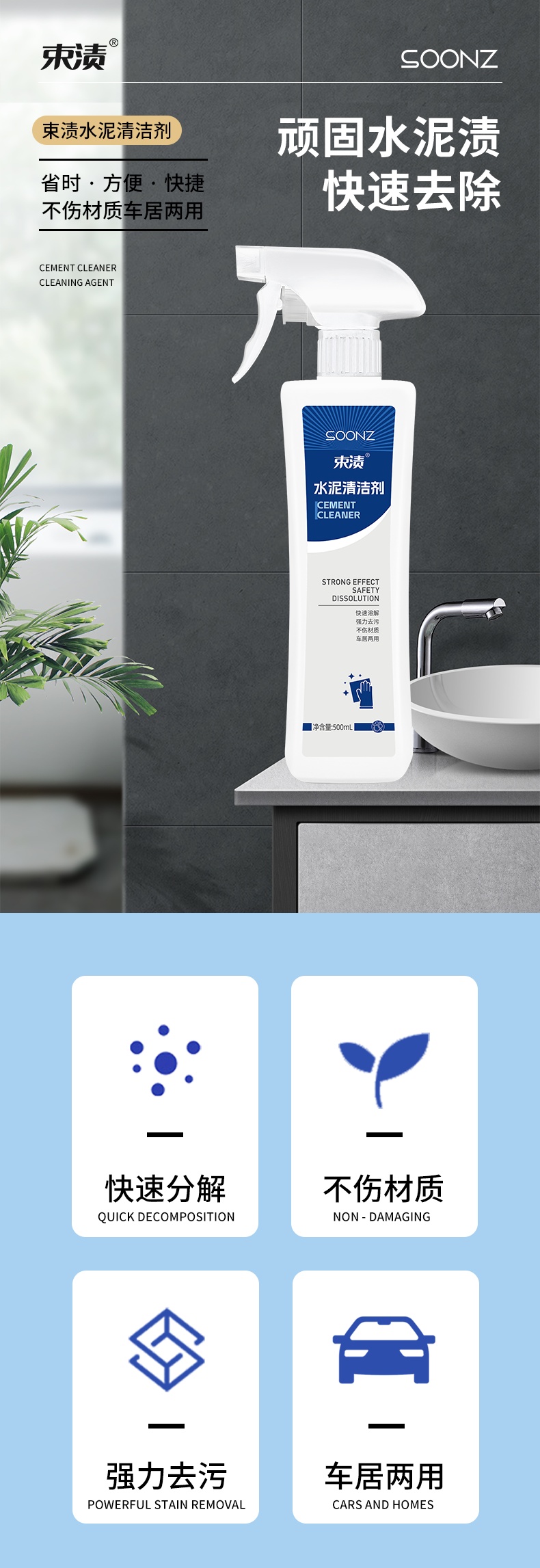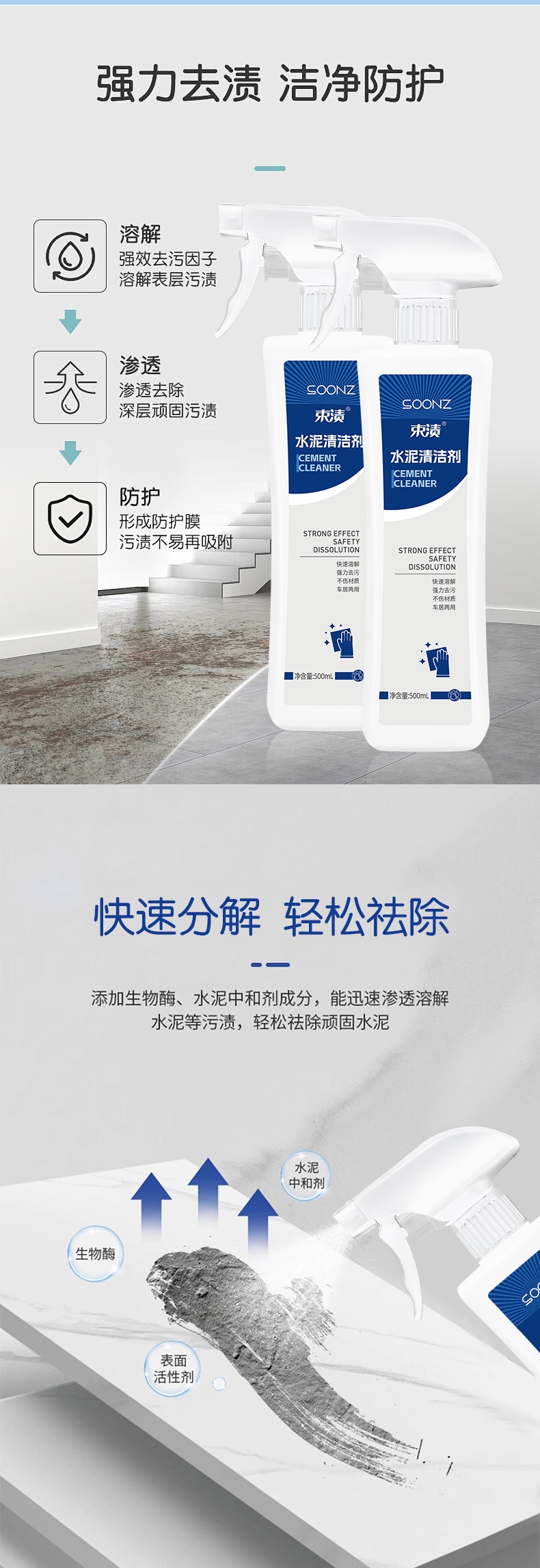 【自营】束渍-水泥清洁剂(500ml)溶解水泥印强力去垢