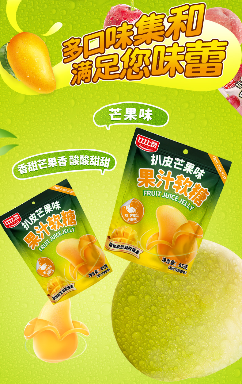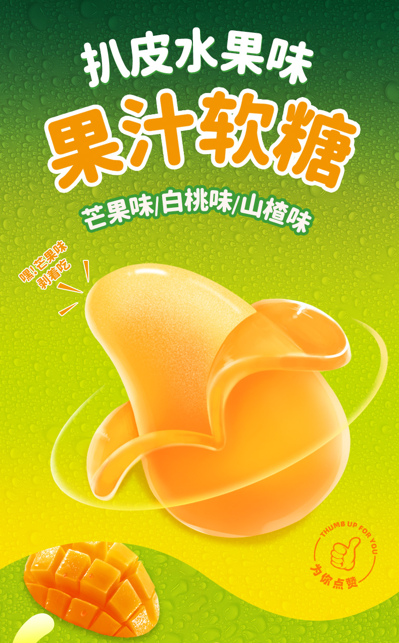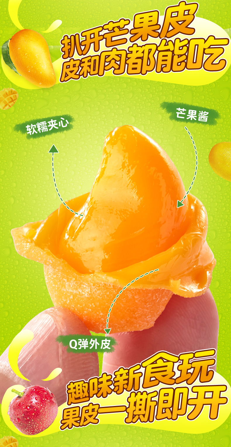 芒果味剥皮软糖果汁橡皮糖网红年货小零食喜糖散装 cay08