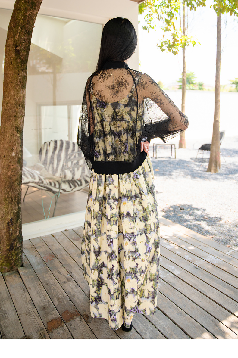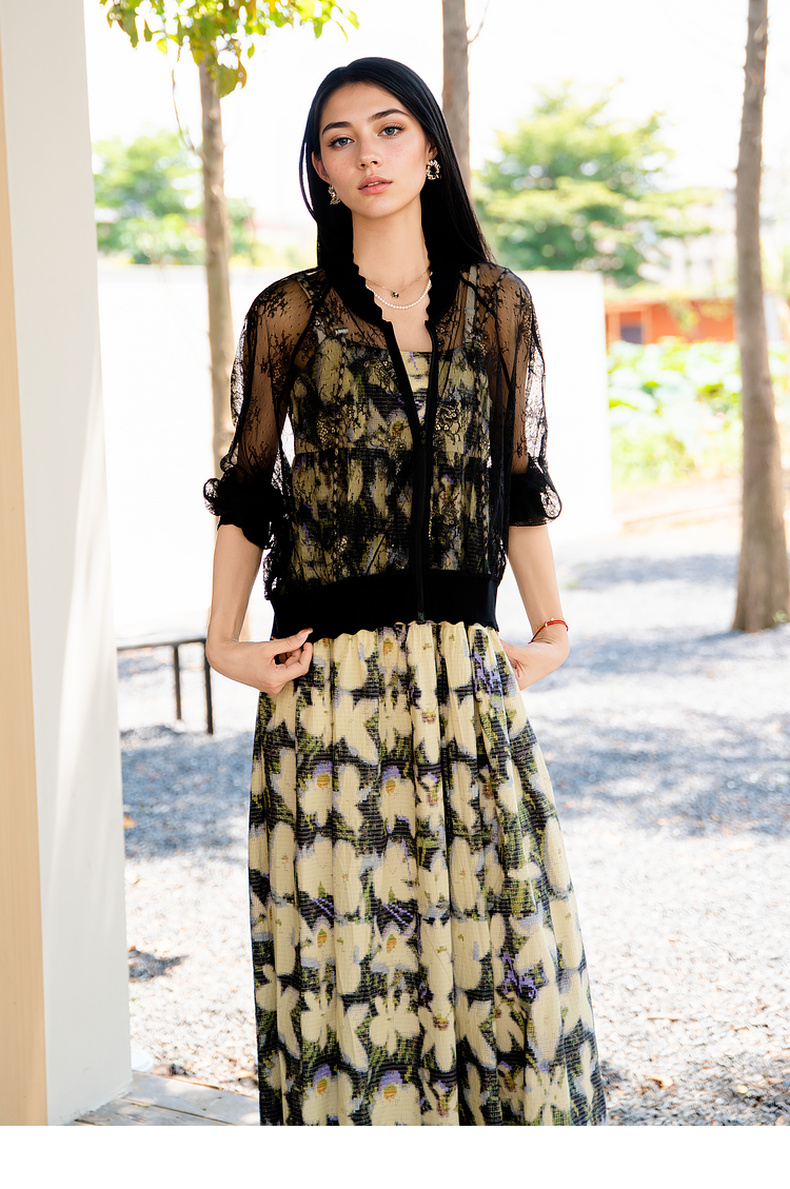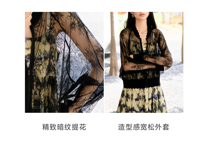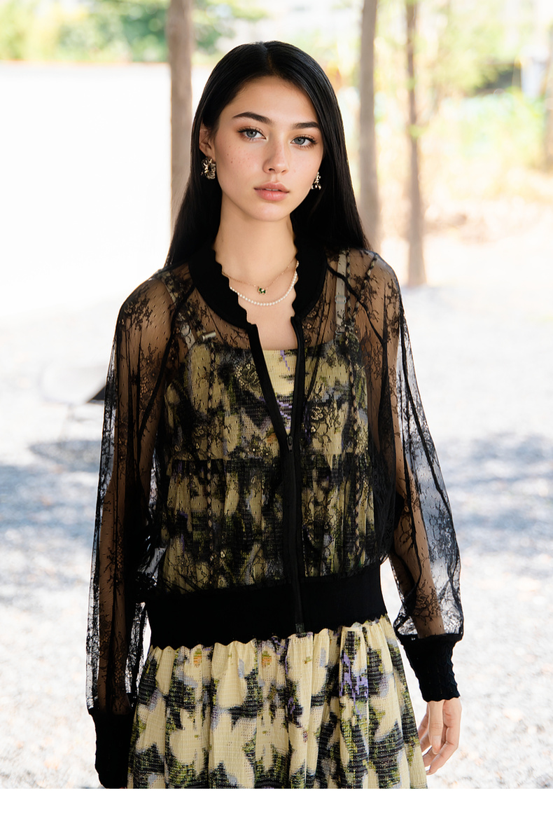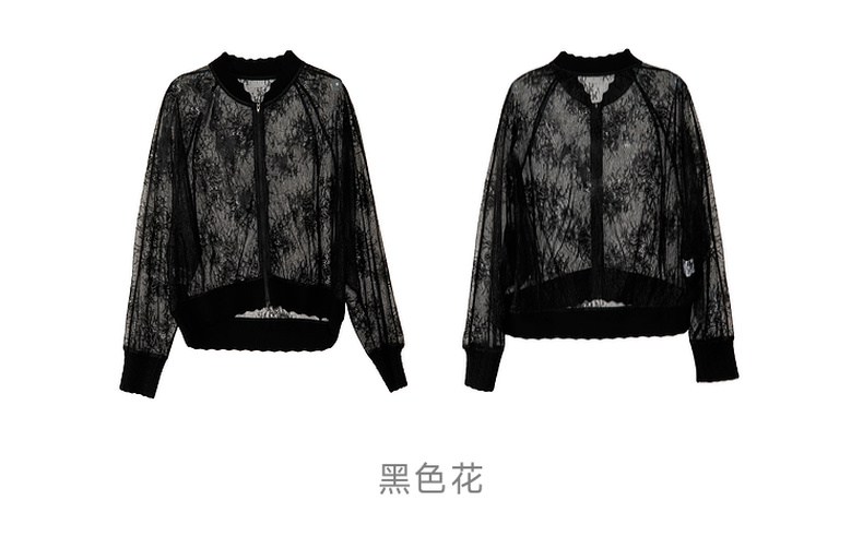 谜底蕾丝棒球服长袖2025秋季新款复古提花透视薄外套女25CMW5003