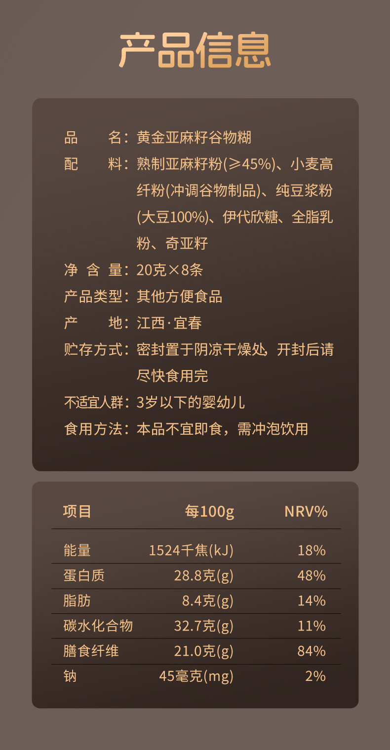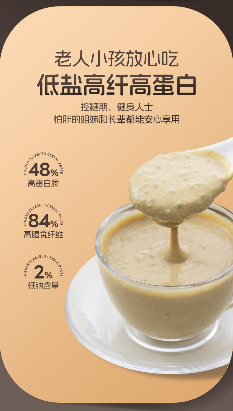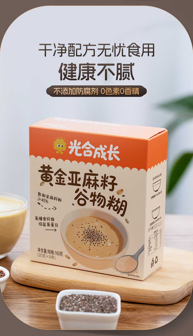 黄金亚麻籽谷物糊 高蛋白高膳食纤维 口感顺滑 0色素0香精 不添加防腐剂 独立包装 160克/盒