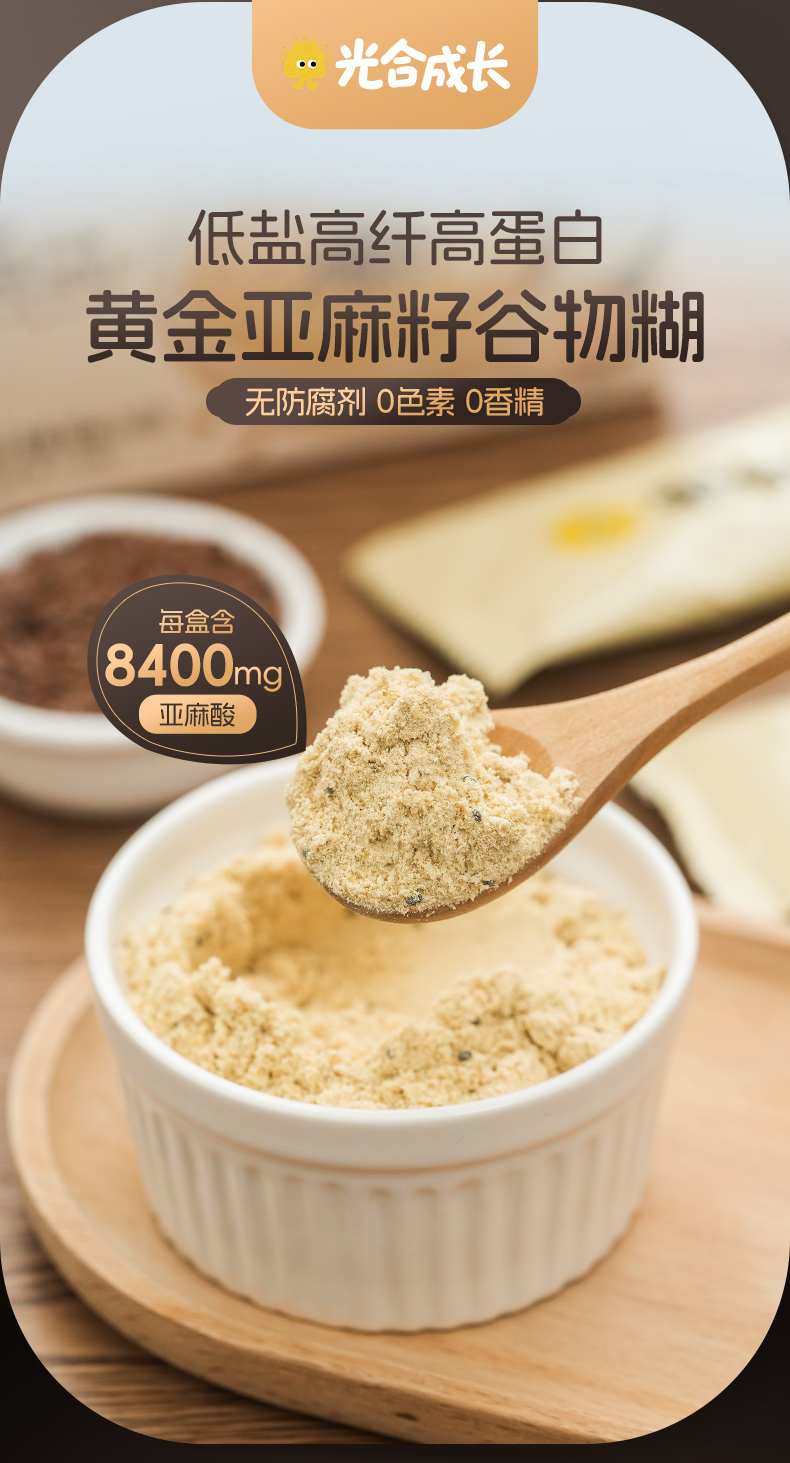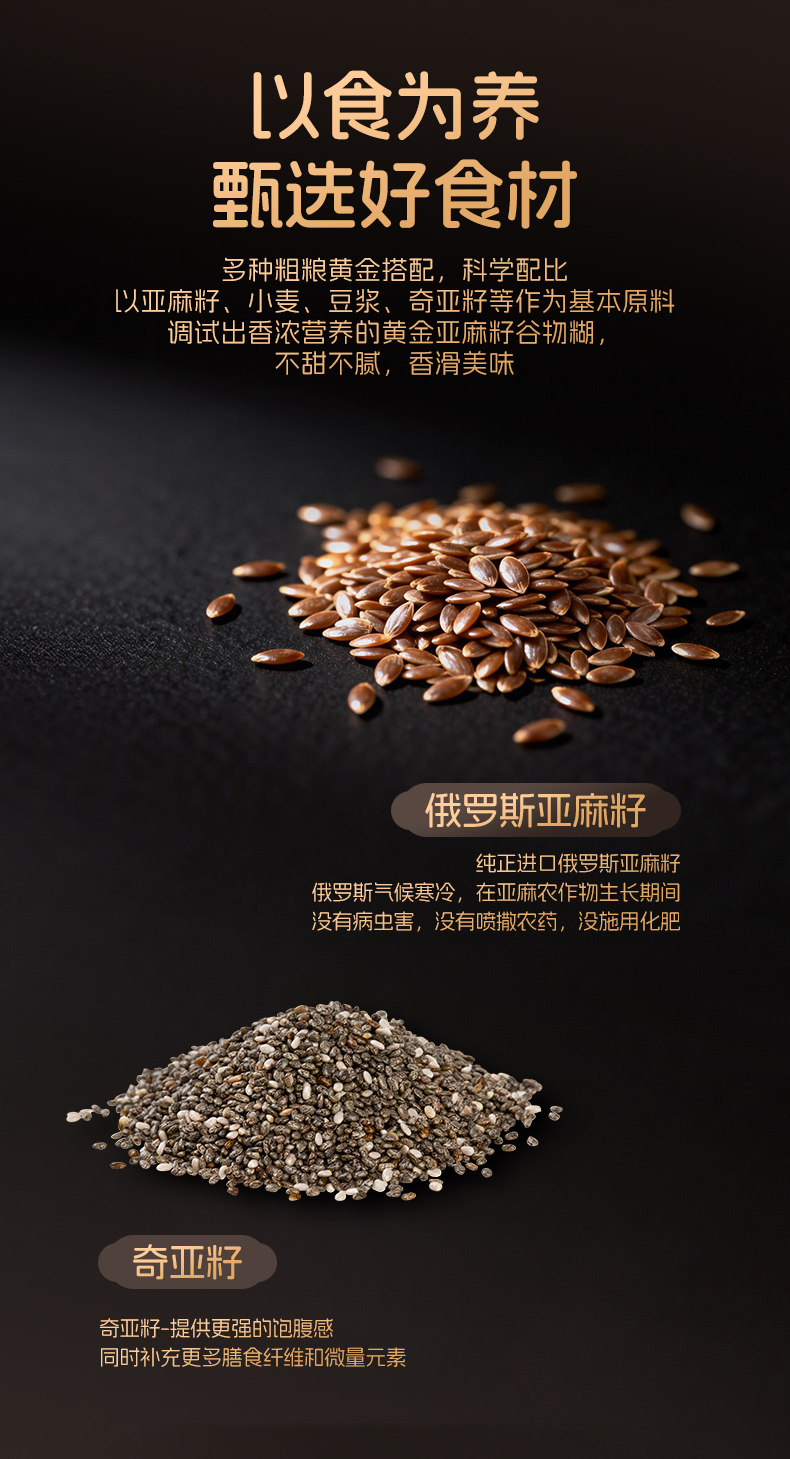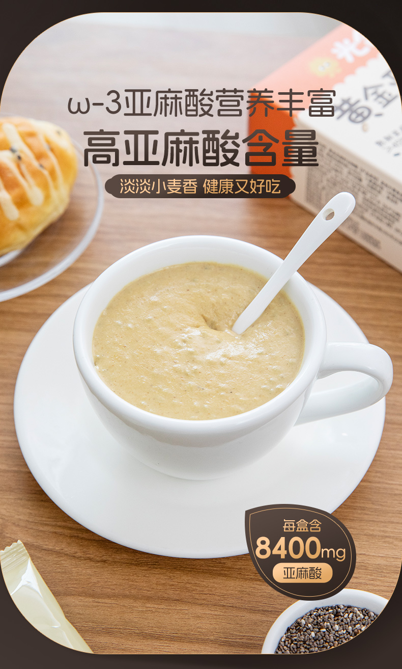 黄金亚麻籽谷物糊 高蛋白高膳食纤维 口感顺滑 0色素0香精 不添加防腐剂 独立包装 160克/盒