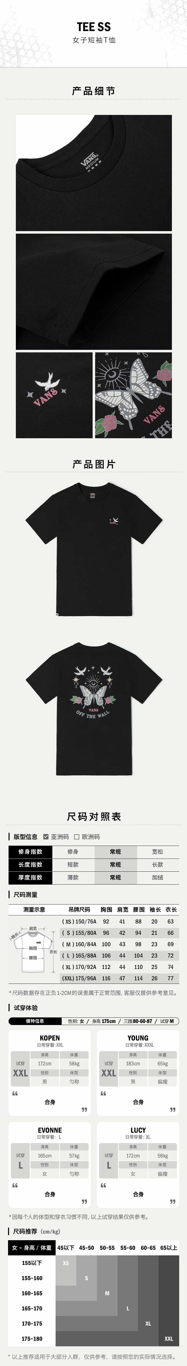 VANS女子短袖T恤夏季彩色图案黑色VN0A7Q17BLK