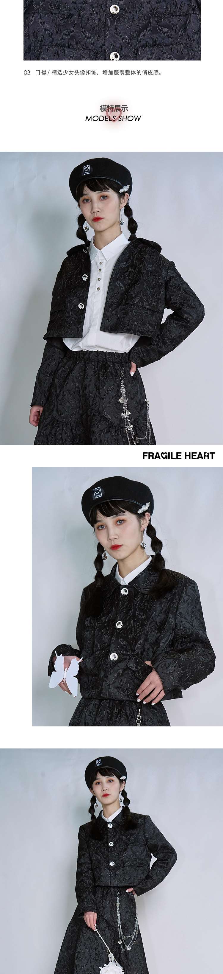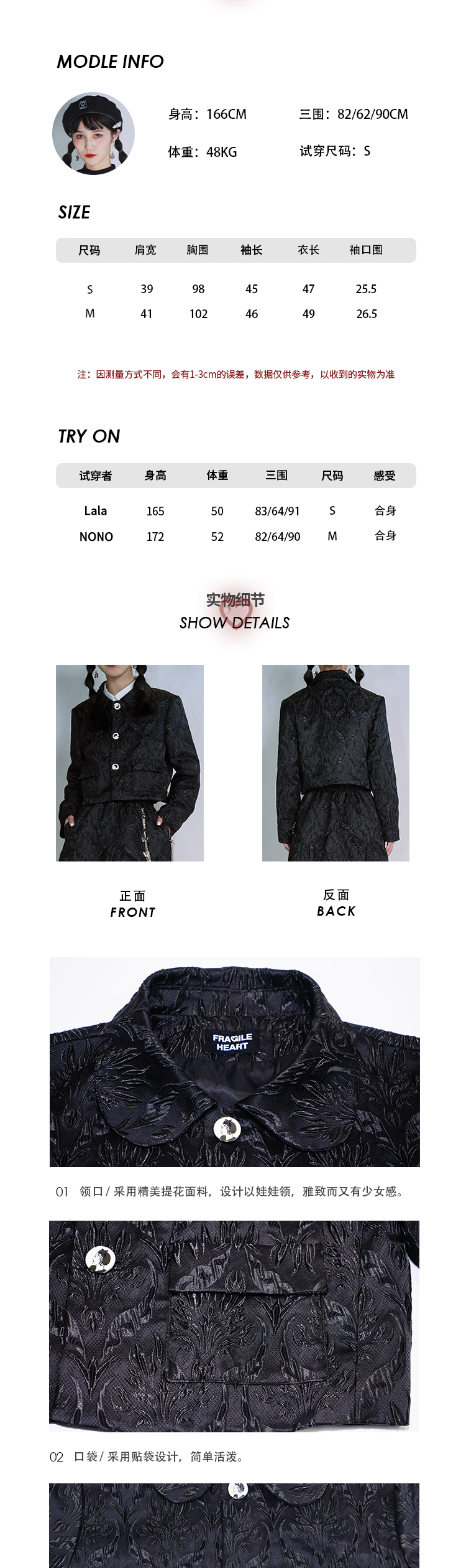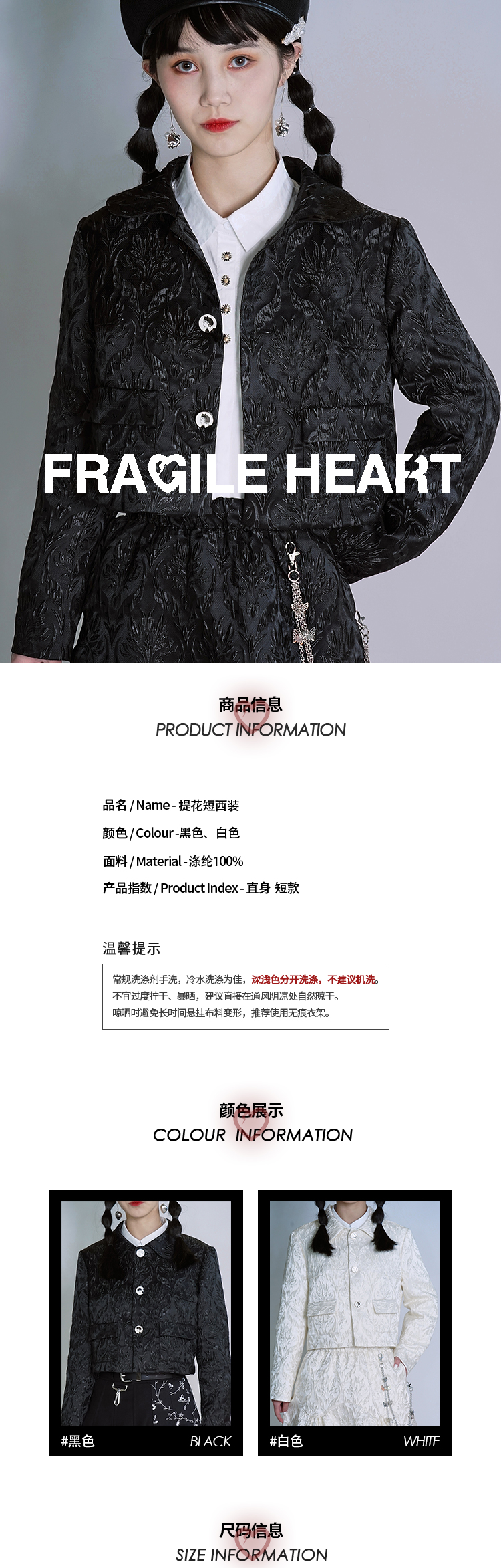 fragileheart易碎商店原创设计2021春季黑白刺绣提花短西装外套女