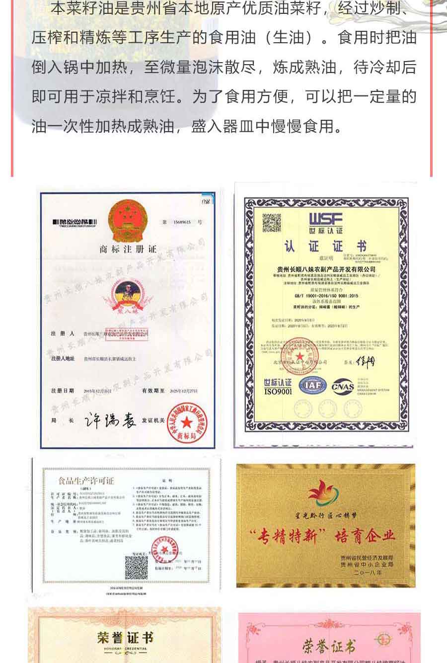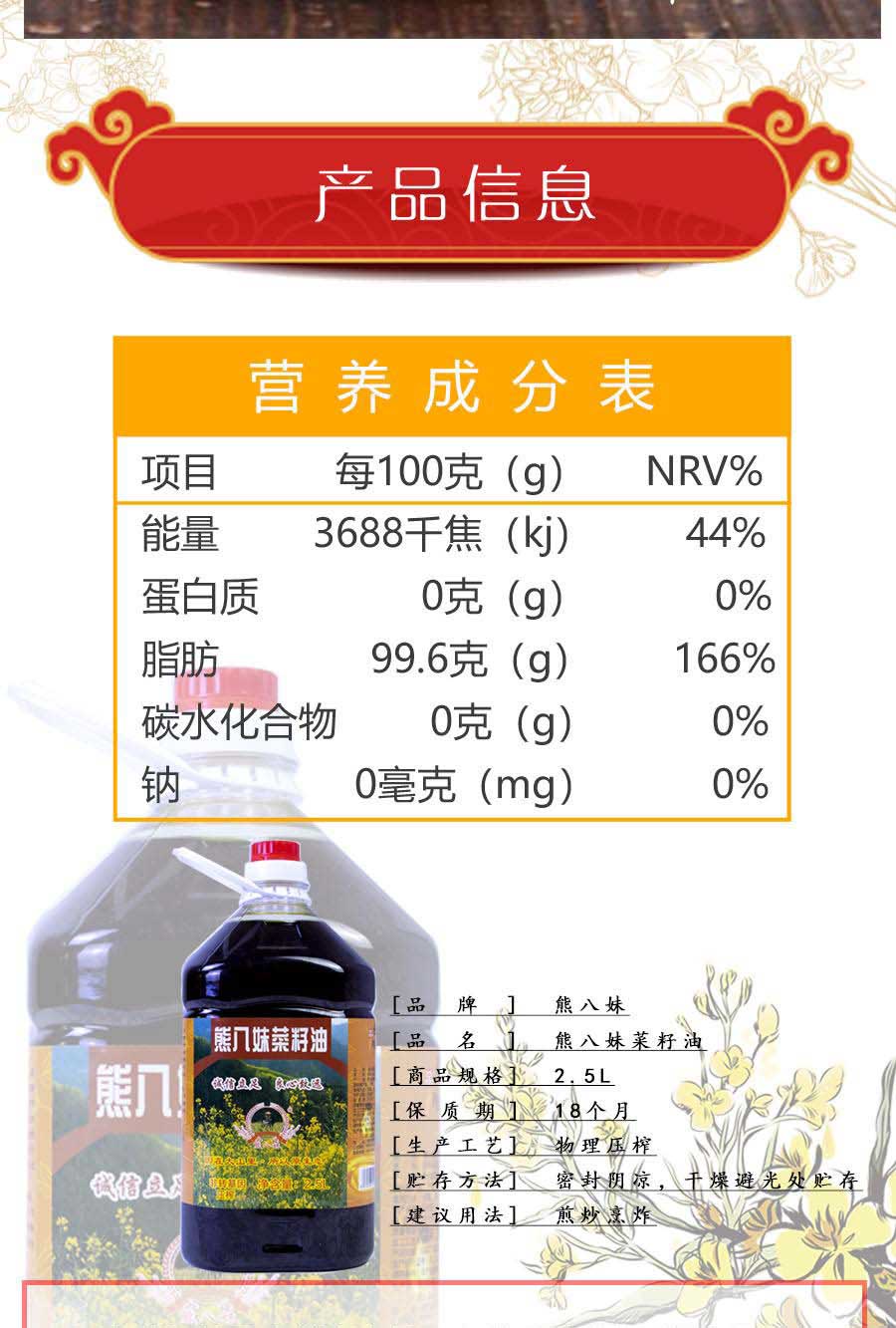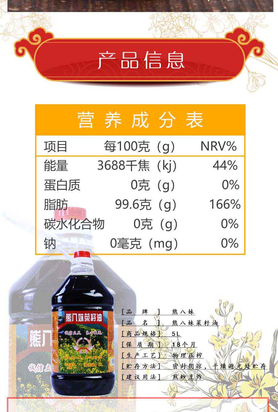 【贵州长顺帮扶】熊八妹 浓香二级压榨菜籽油 多规格可选