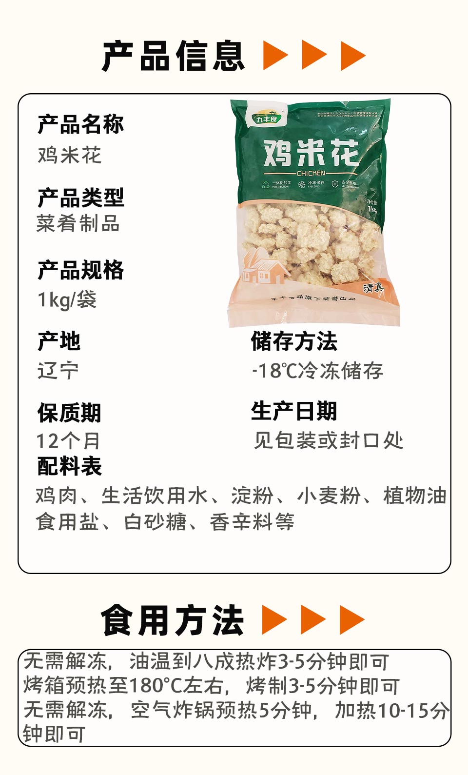 25F九丰鸡米花1kg/袋 10袋/件