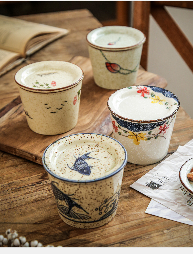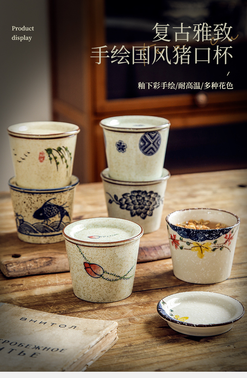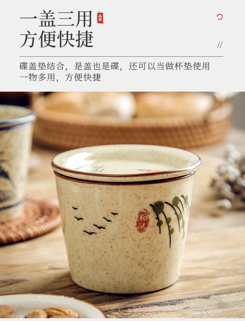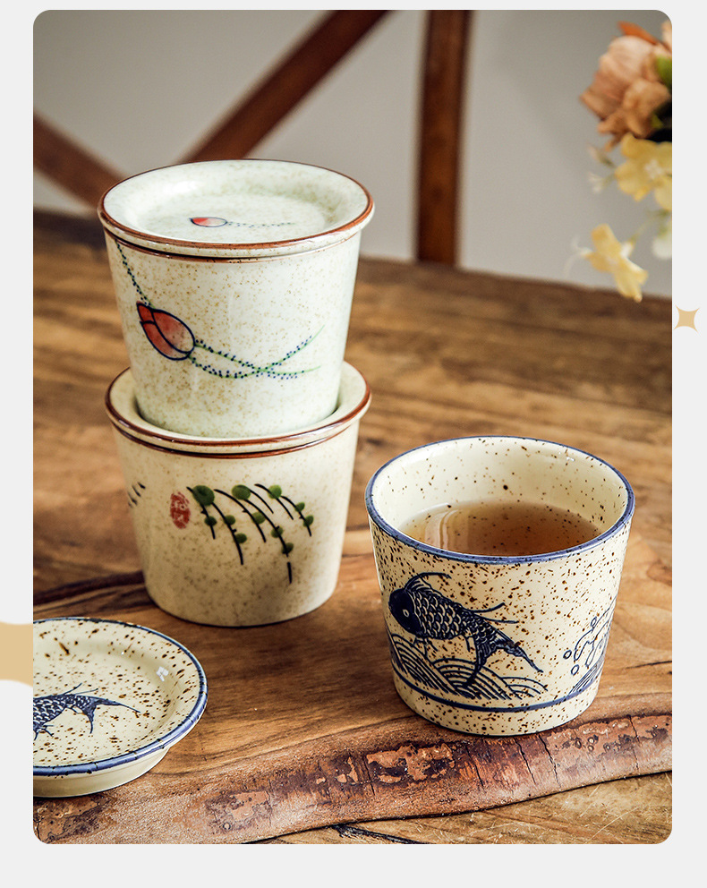 【出口陶瓷茶杯】日式陶瓷茶杯围炉煮茶功夫茶具套装带盖品茗杯办公室泡茶茶盏单杯