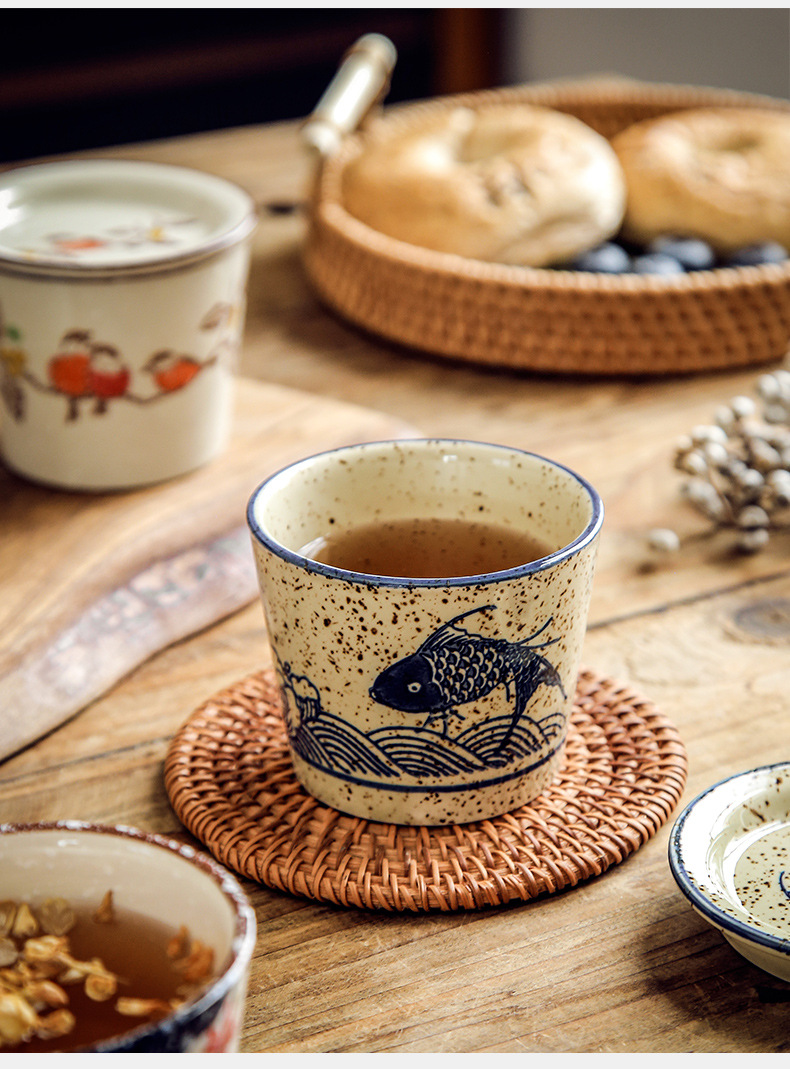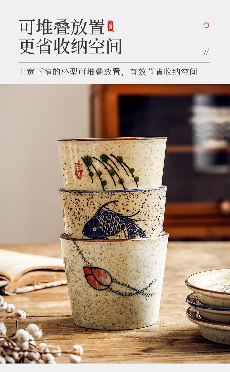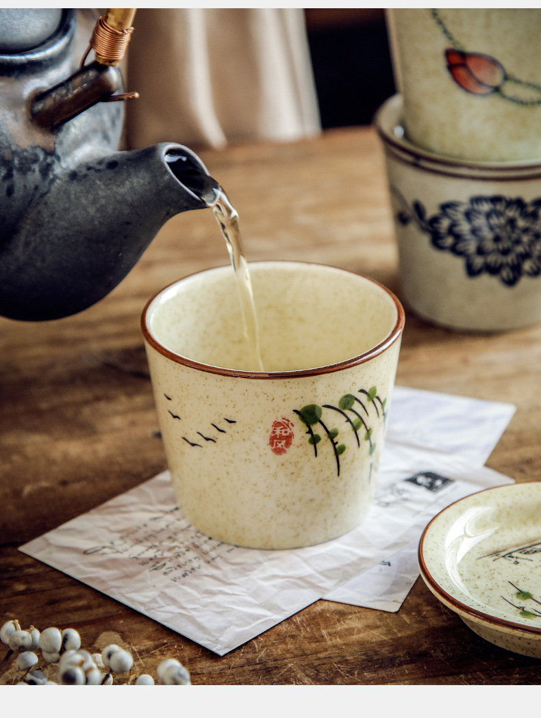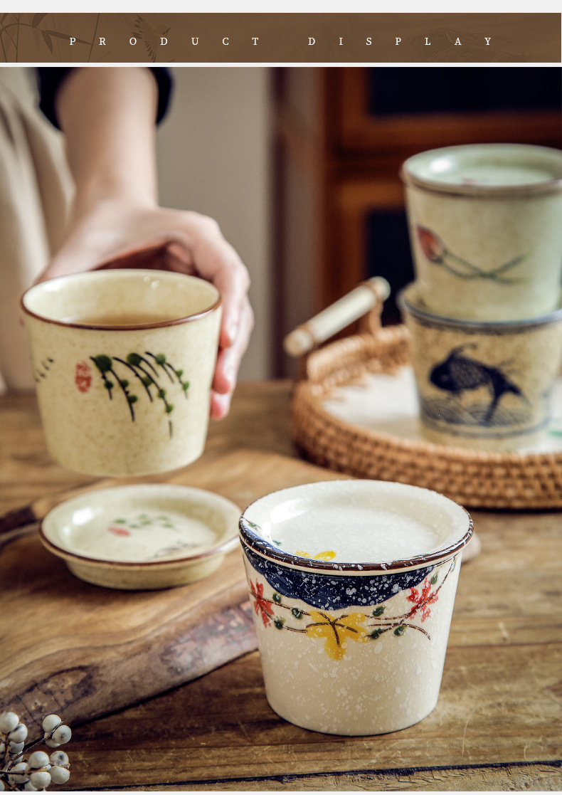 【出口陶瓷茶杯】日式陶瓷茶杯围炉煮茶功夫茶具套装带盖品茗杯办公室泡茶茶盏单杯