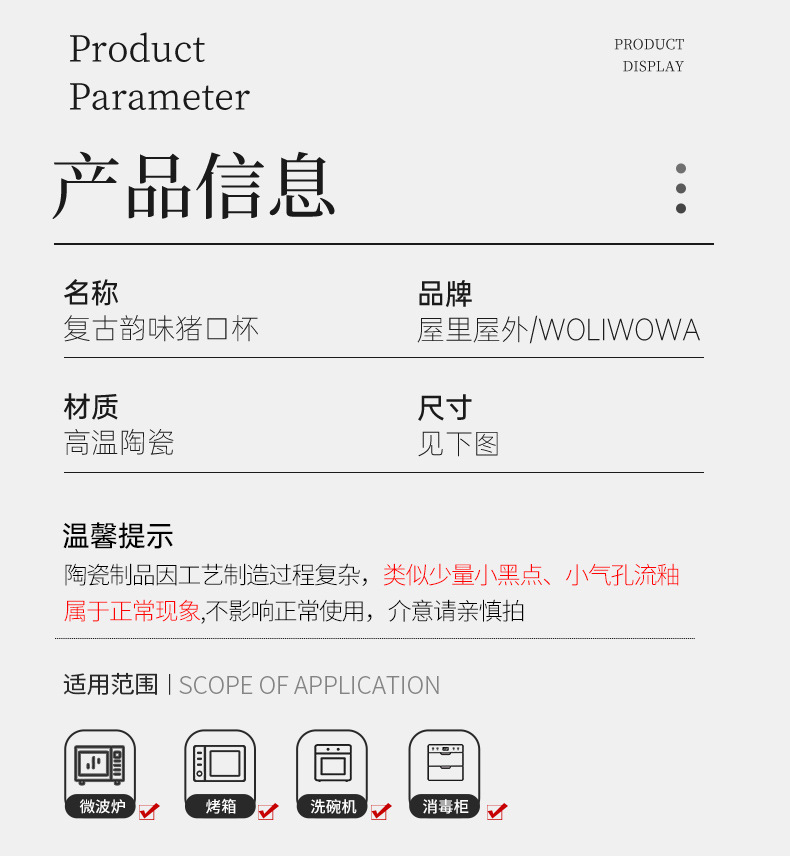 向顾客展示商品细节与优势,常见内容有: