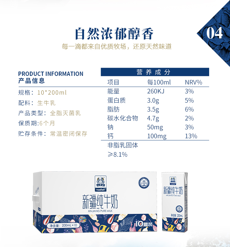 【自营】土姥姥新疆纯牛奶200ML*10盒