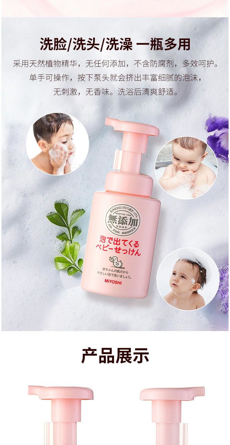 日本Miyoshi三芳婴幼儿童洗面奶宝宝泡沫洁面乳男女孩沐浴露250ml