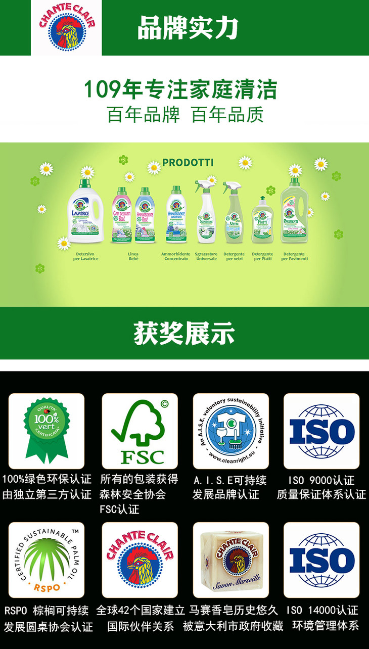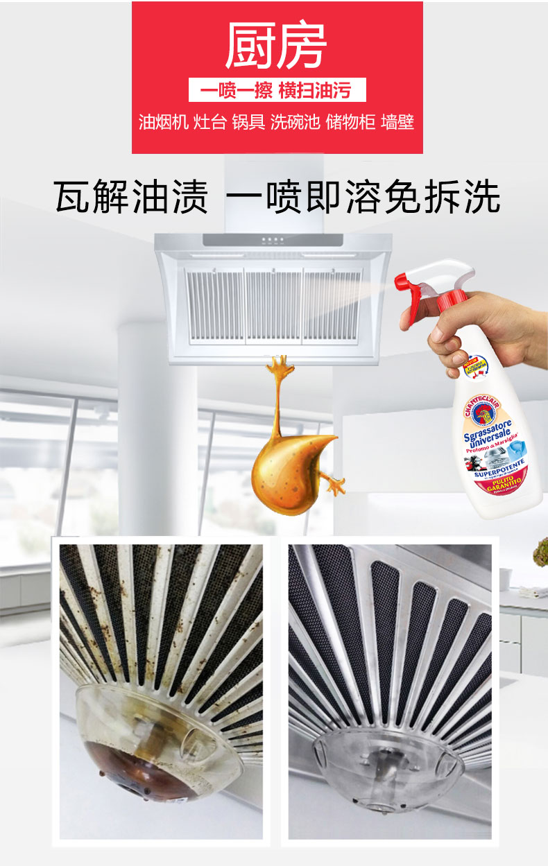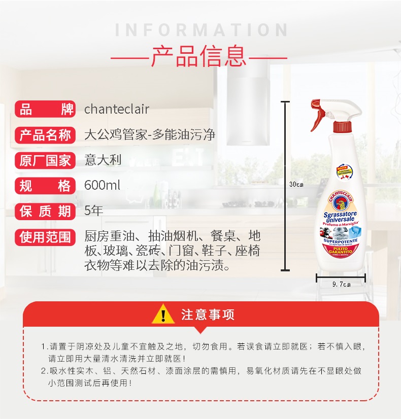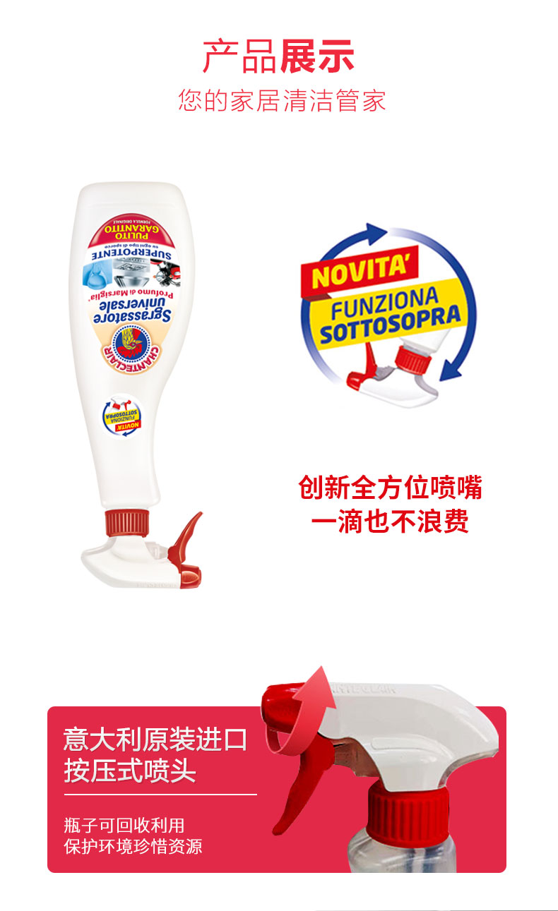 【中欧班列精选3瓶】意大利进口大公鸡管家经典款多能油污清洁剂 600ml/瓶