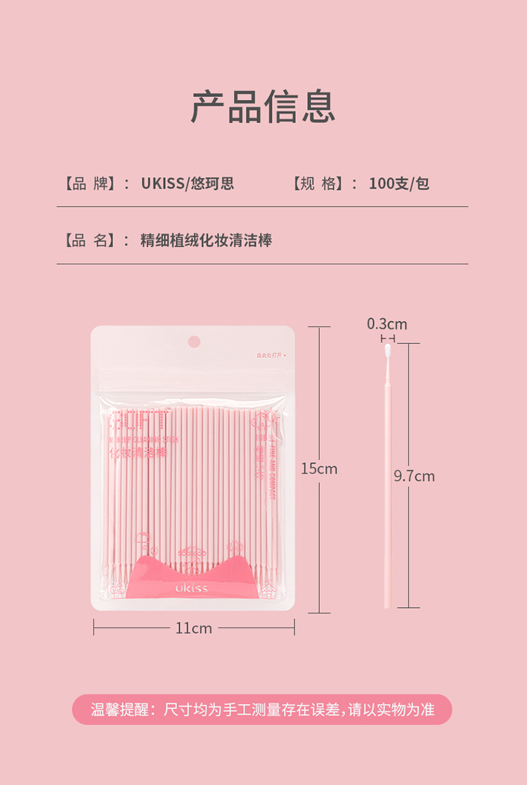 【专区29元任选3件】ukiss悠珂思精细植绒化妆清洁棒100支装