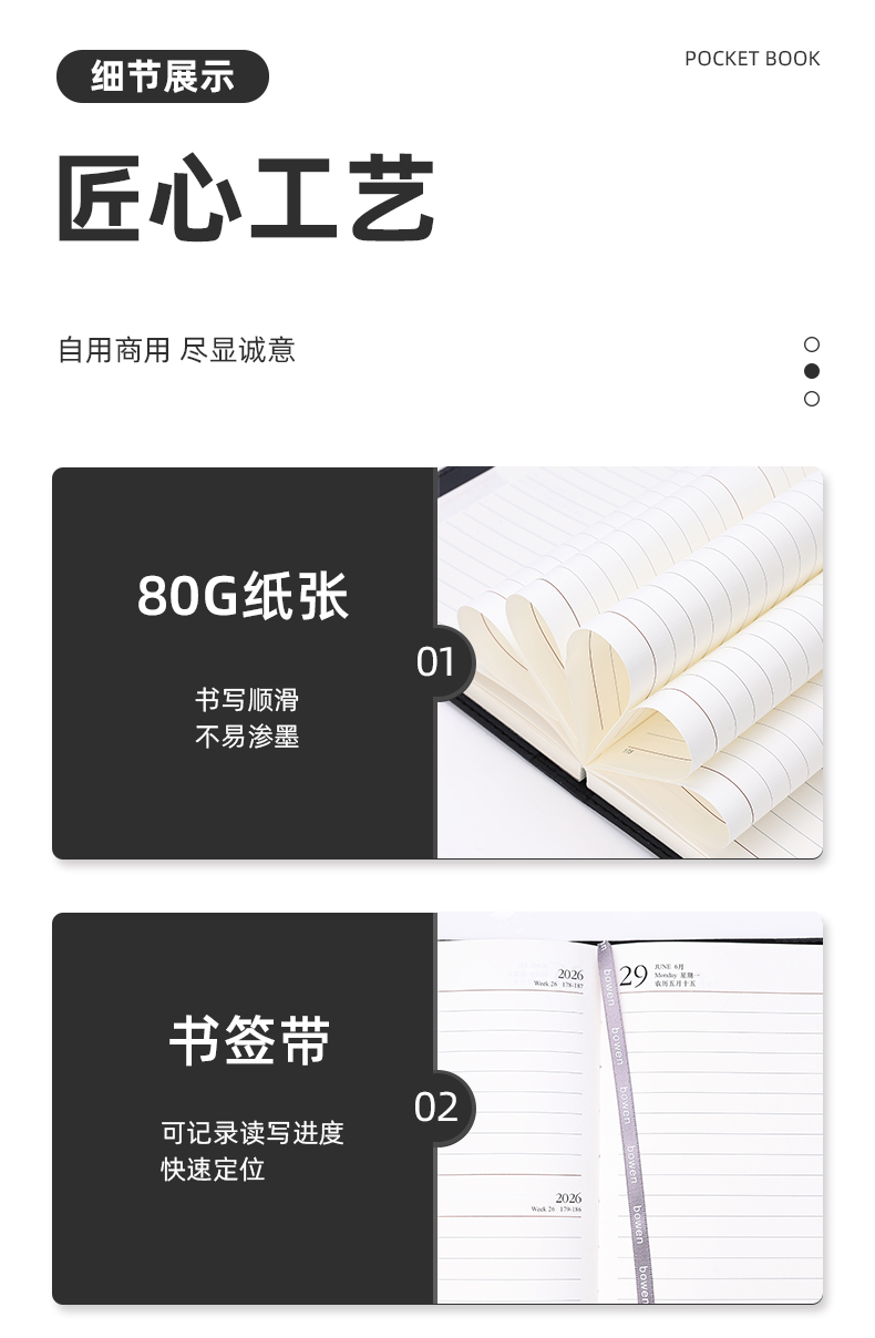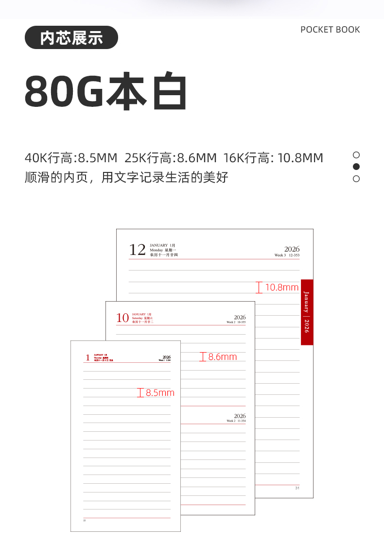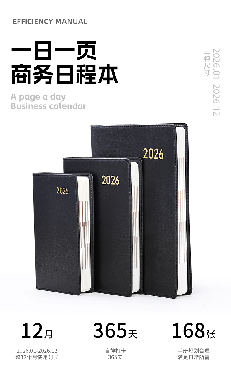 2026年简约大方记事本年历本365天日程本学生计划本子日记本 A5