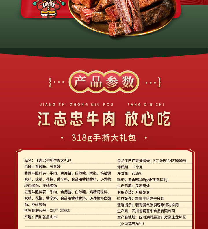 江志忠手撕牛肉大礼包318g【江志忠】JCT