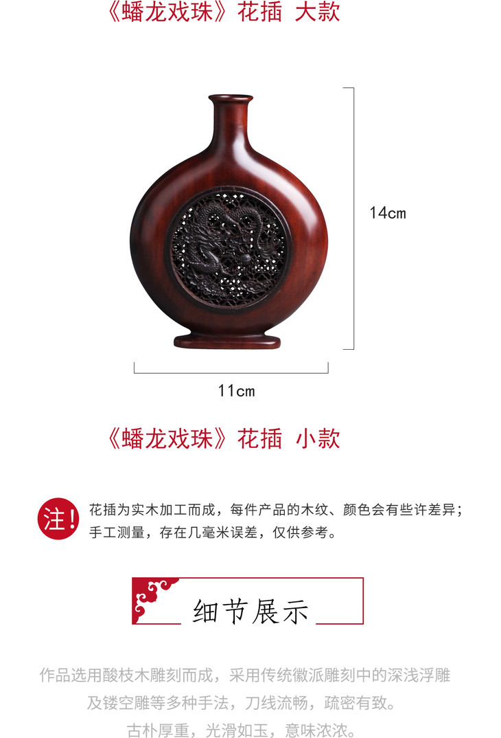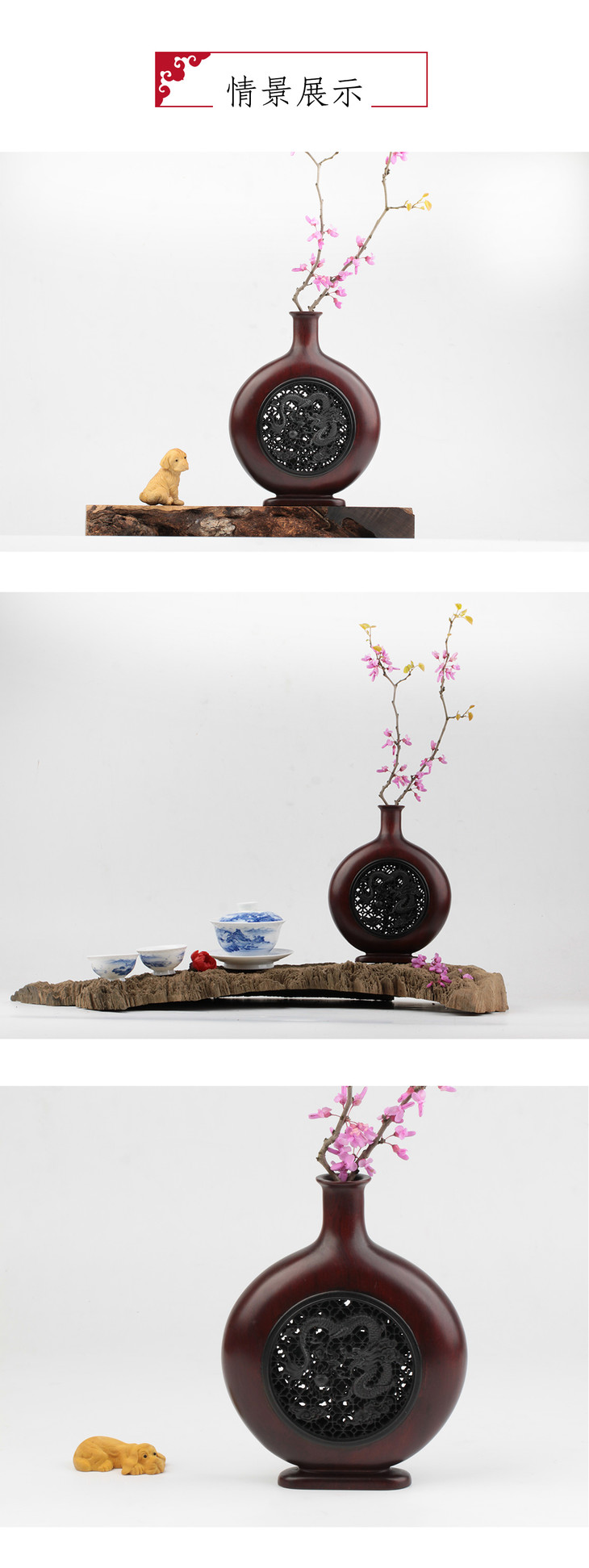 蟠龙戏珠°大款&小款 酸枝镶紫光檀花瓶