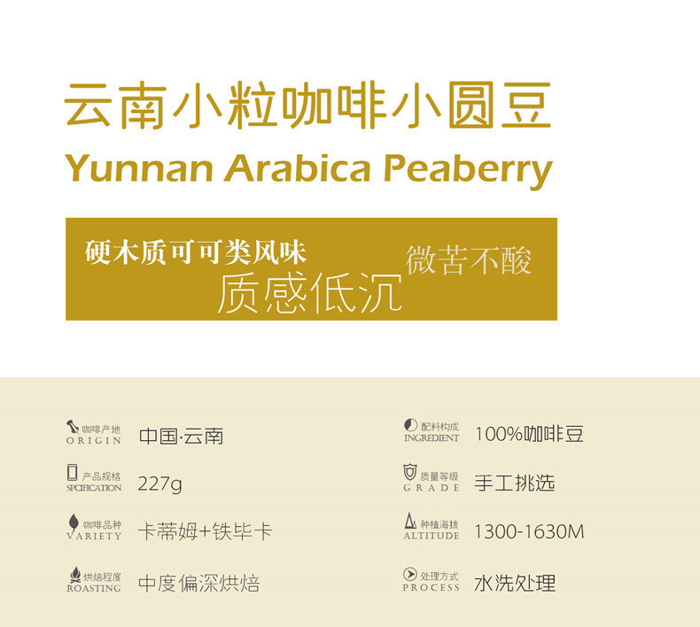 印象庄园牌云南小粒咖啡小圆豆227g/袋