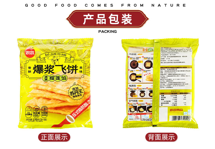 思念榴莲馅爆浆飞饼270g*2袋