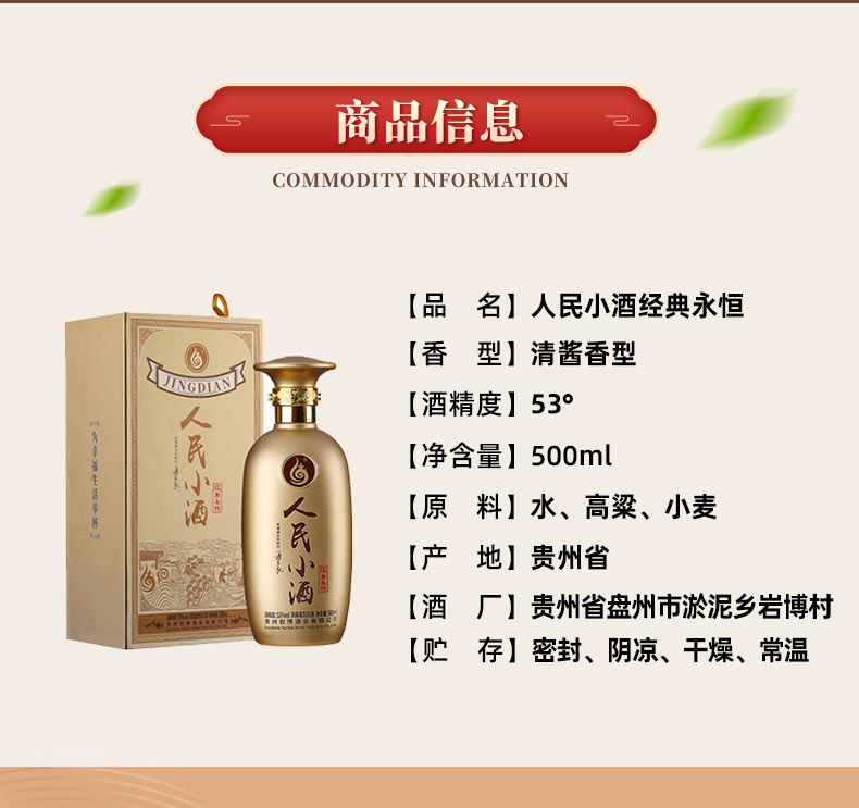 人民小酒经典永恒 53度清酱香型白酒 整箱500ml*6瓶包邮
