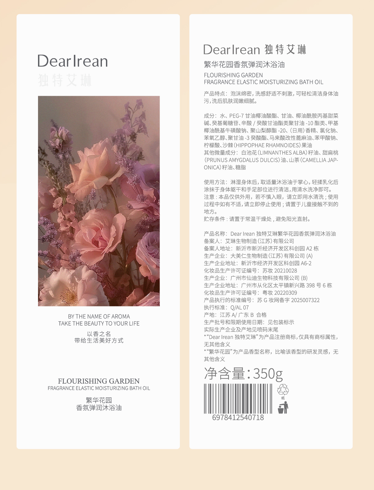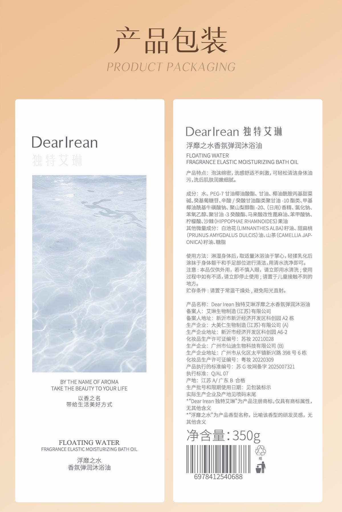 Dear Irean独特艾琳浮靡之水香氛弹润沐浴油350g【YW】
