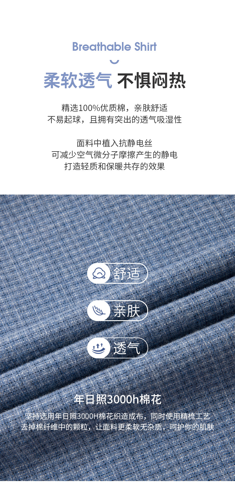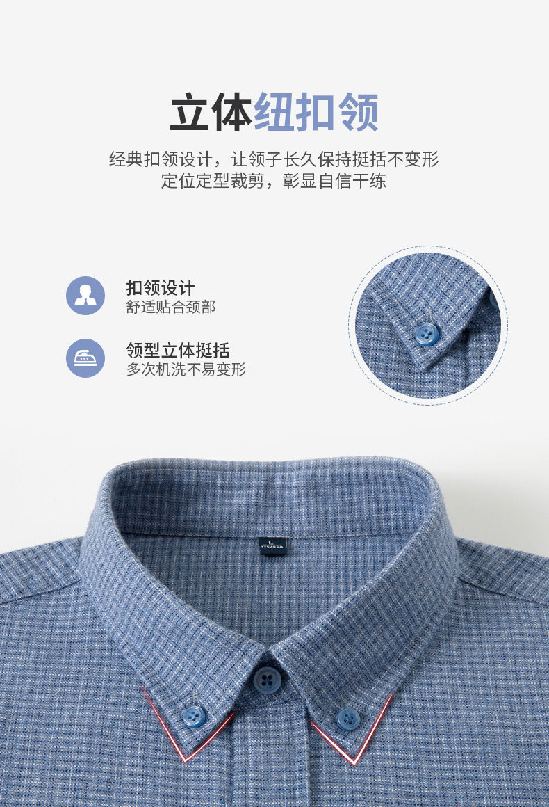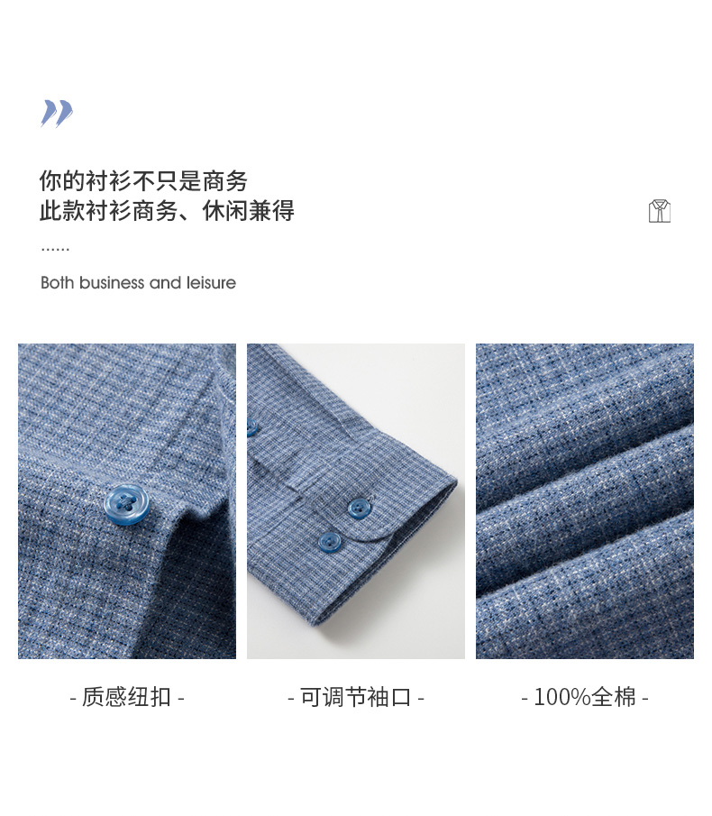 【100棉】罗蒙男士长袖衬衫百搭舒适经典细格时尚休闲通勤翻领衬衫