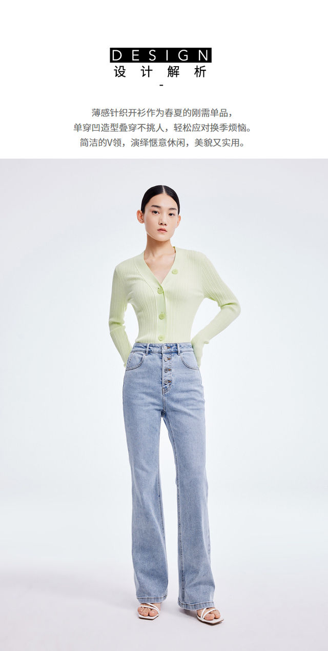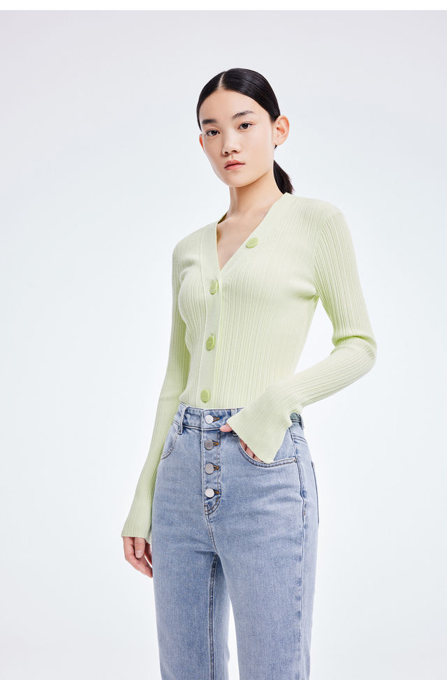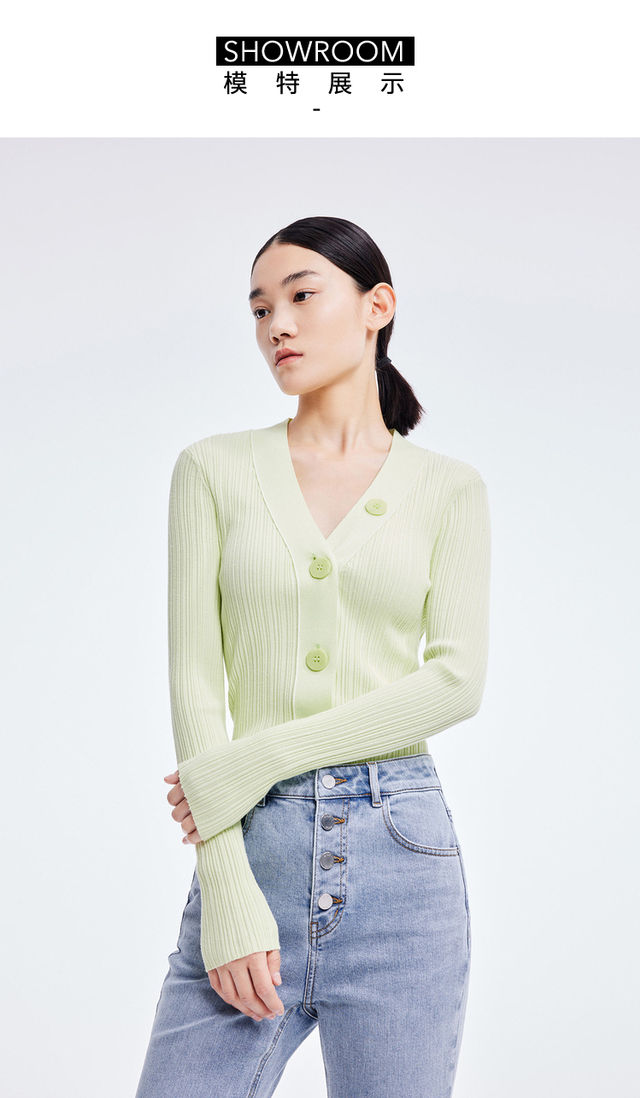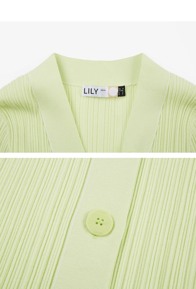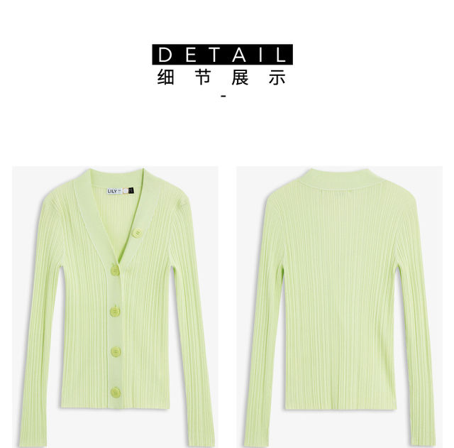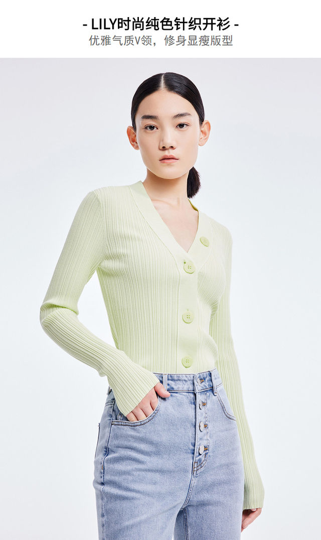 LILY2022夏季新款女装时尚纯色百搭气质V领修身针织开衫122210TC313