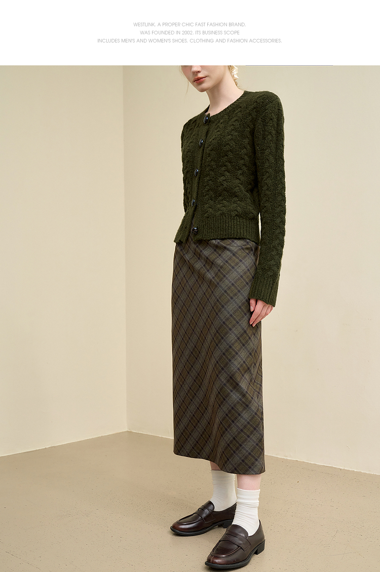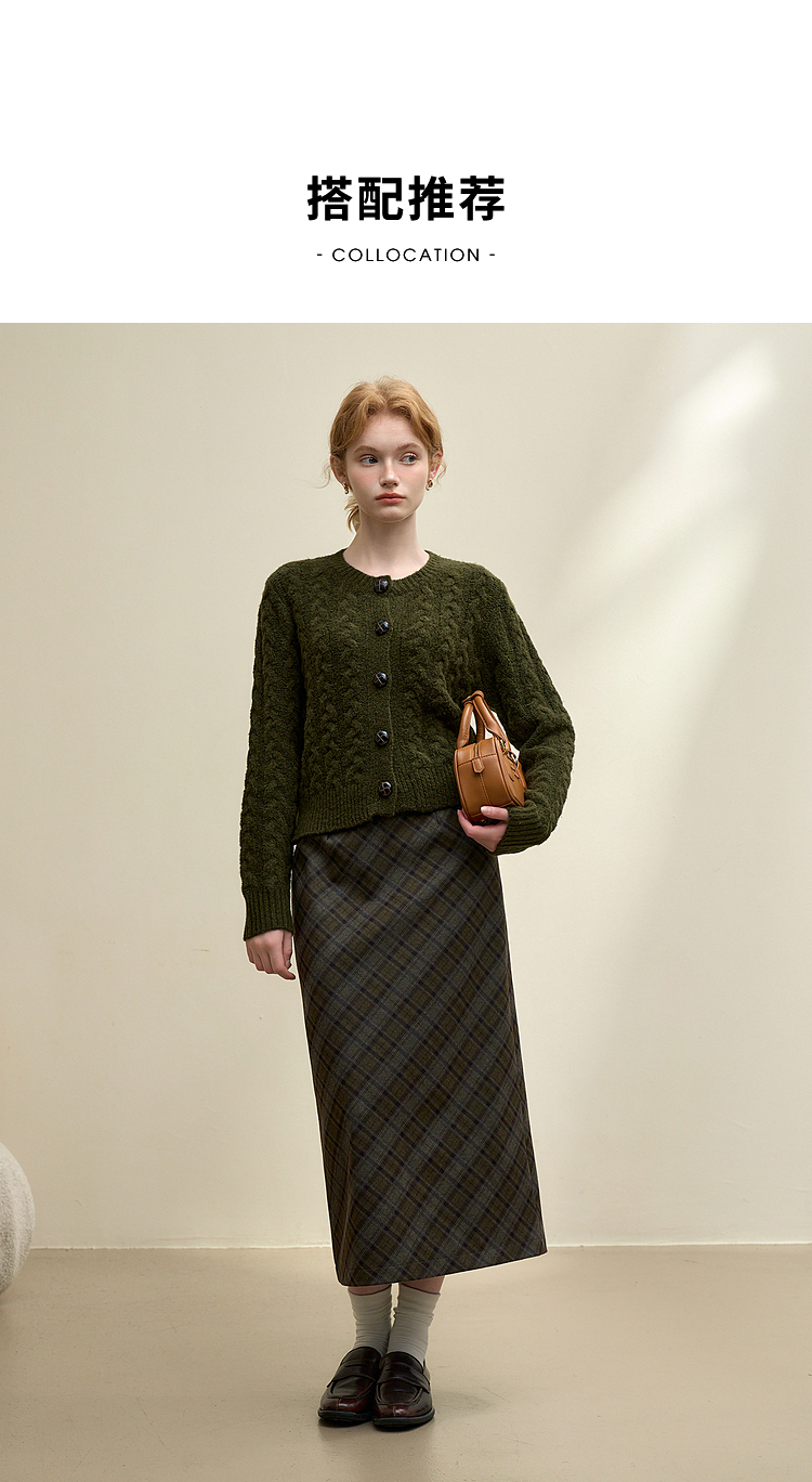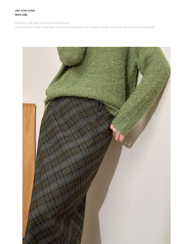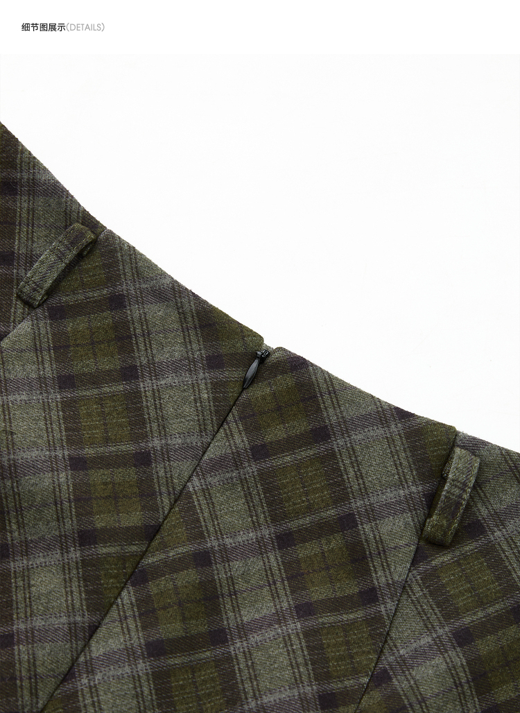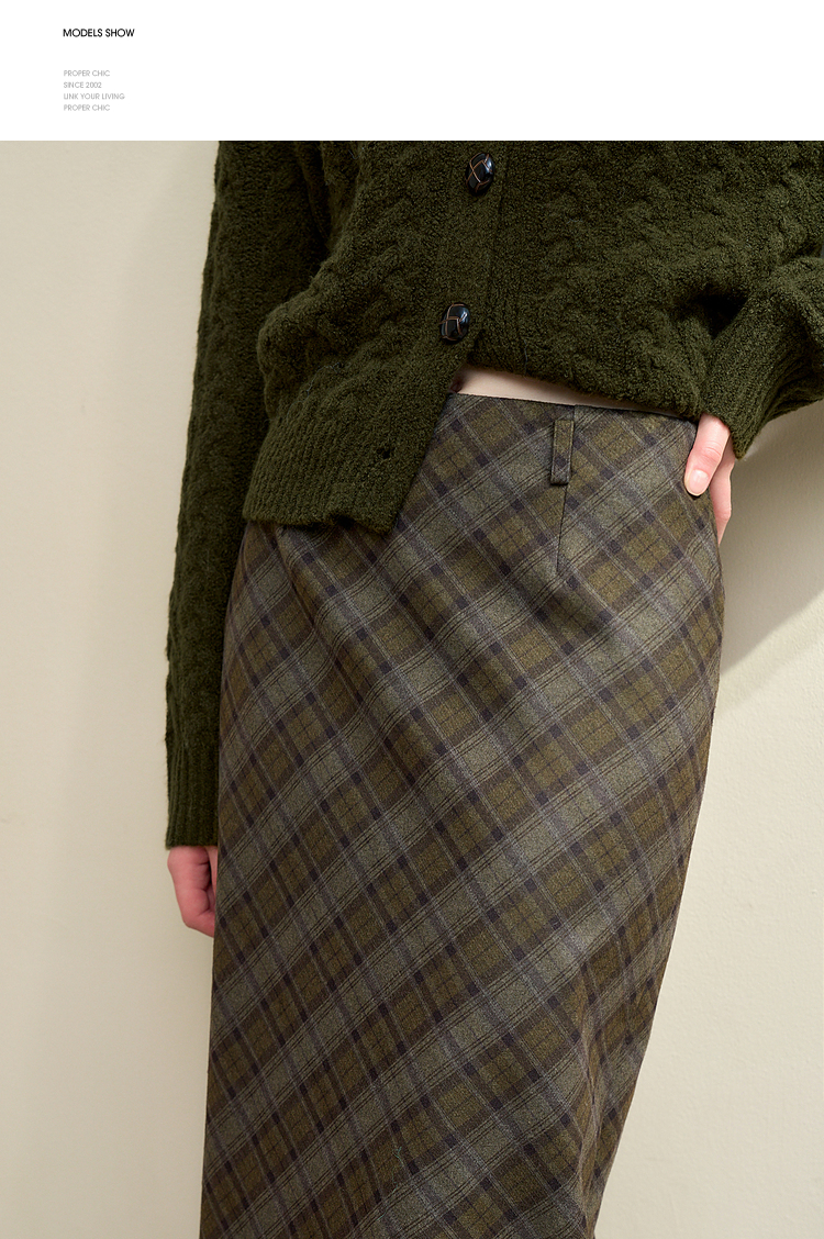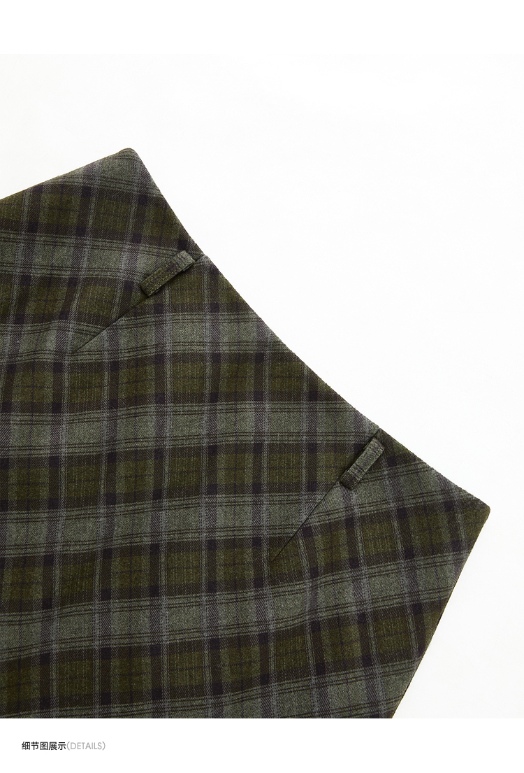 西遇中长款高腰半身裙女冬季新款直筒复古格纹呢料设计裙子14142957