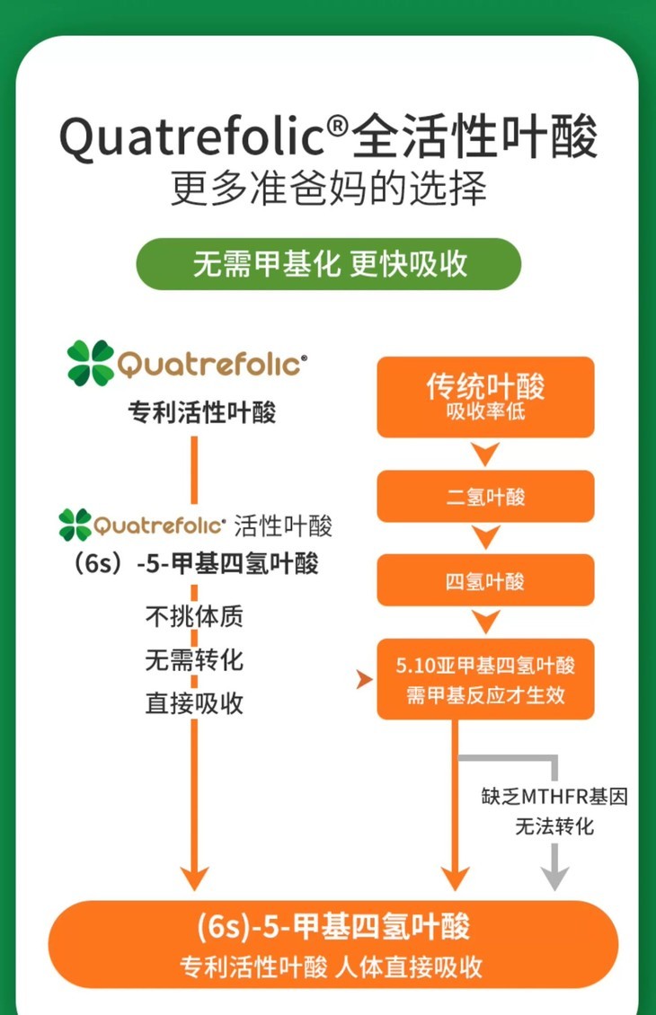 活性叶酸 800mcgDFE(5-甲基四氢叶酸30粒