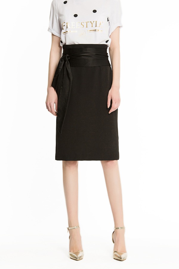 ZARA 黑色系带高腰直筒裙 1366