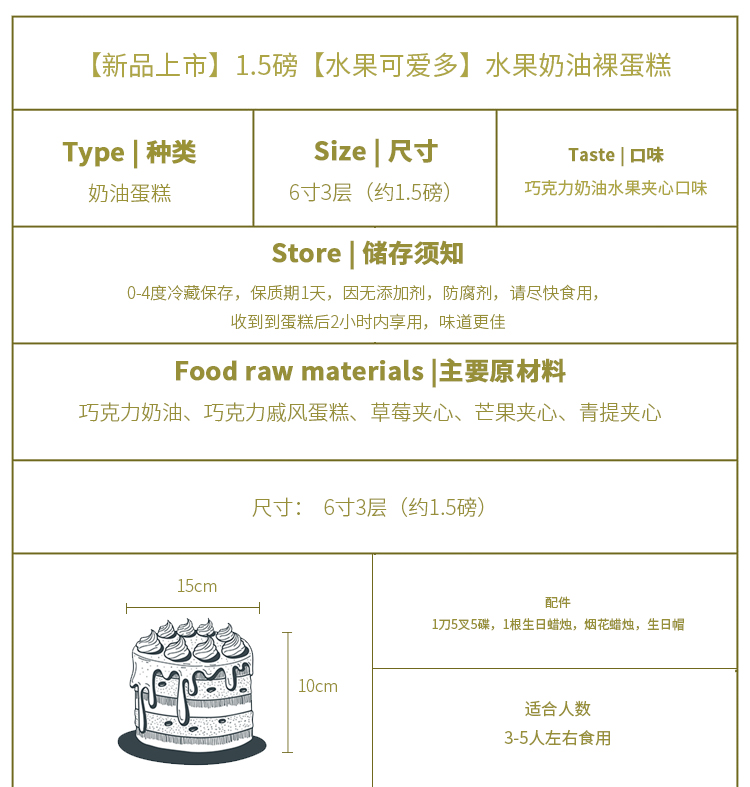 【新品上市】1.5磅【水果可爱多】水果奶油裸蛋糕