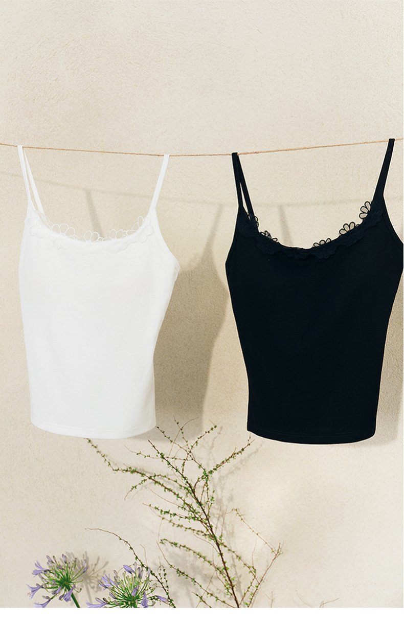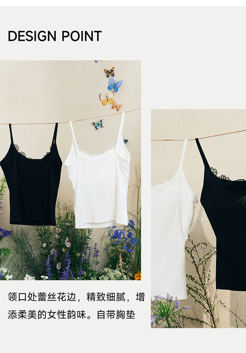 两三事 反复爱上 2025夏季新款百搭花边拼接打底吊带背心女