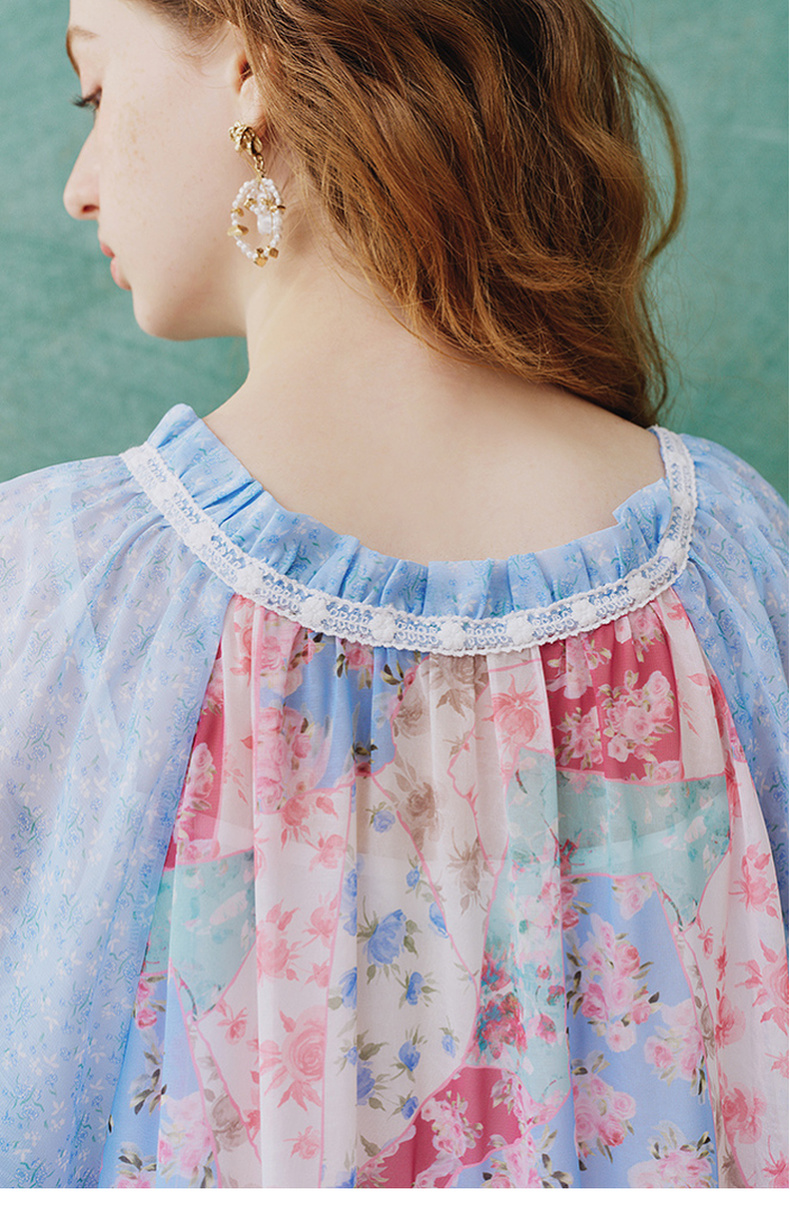 两三事梵高文艺春日序言2025春季新款蕾丝拼接荷叶边领绑带上衣女S25CLS342