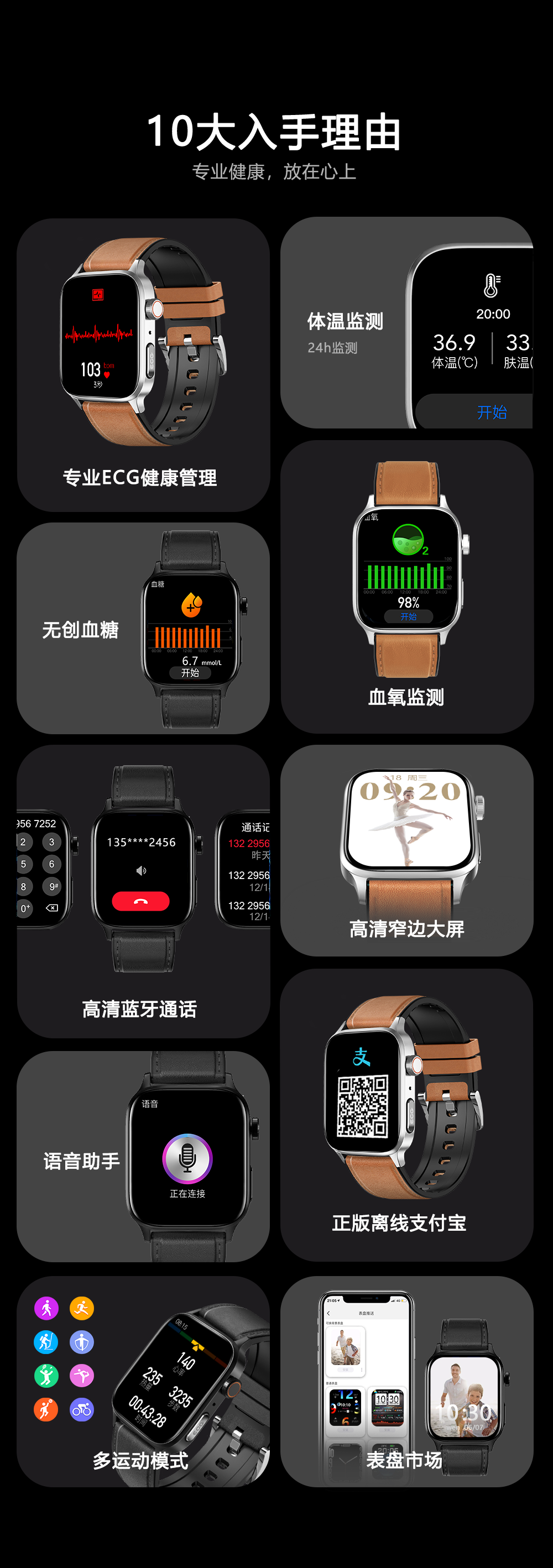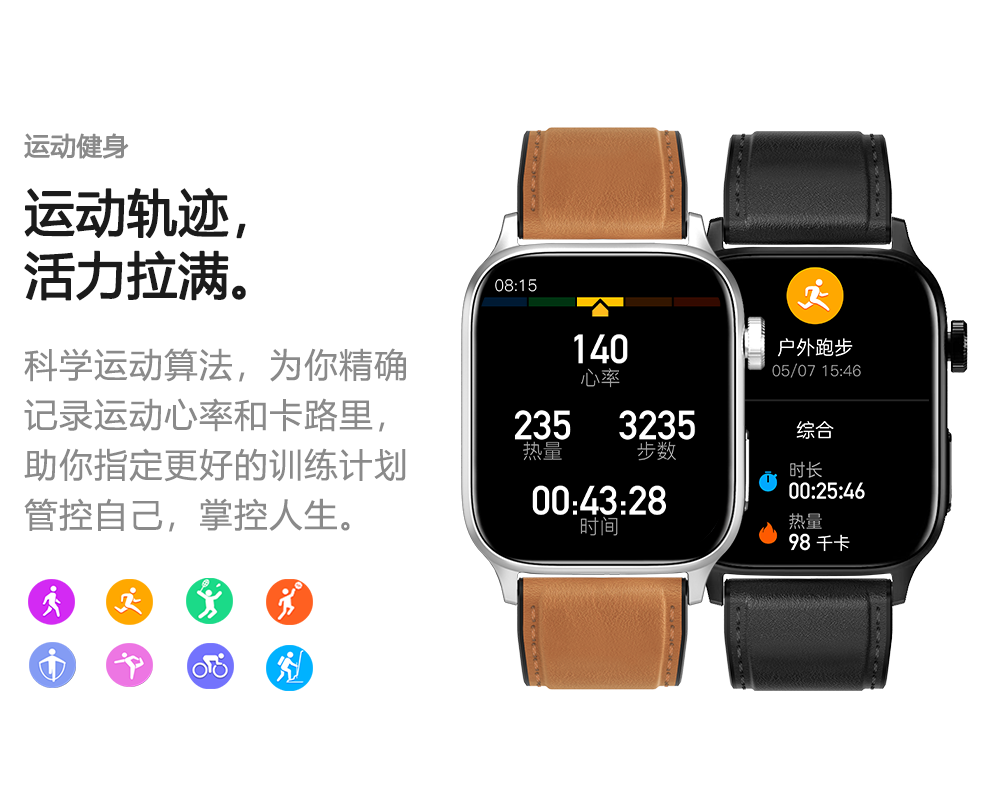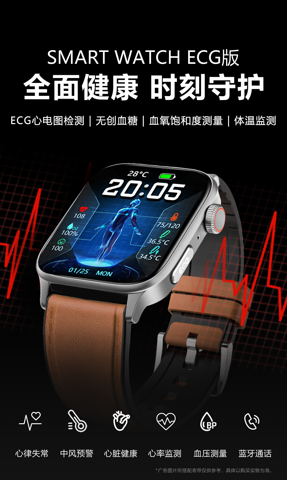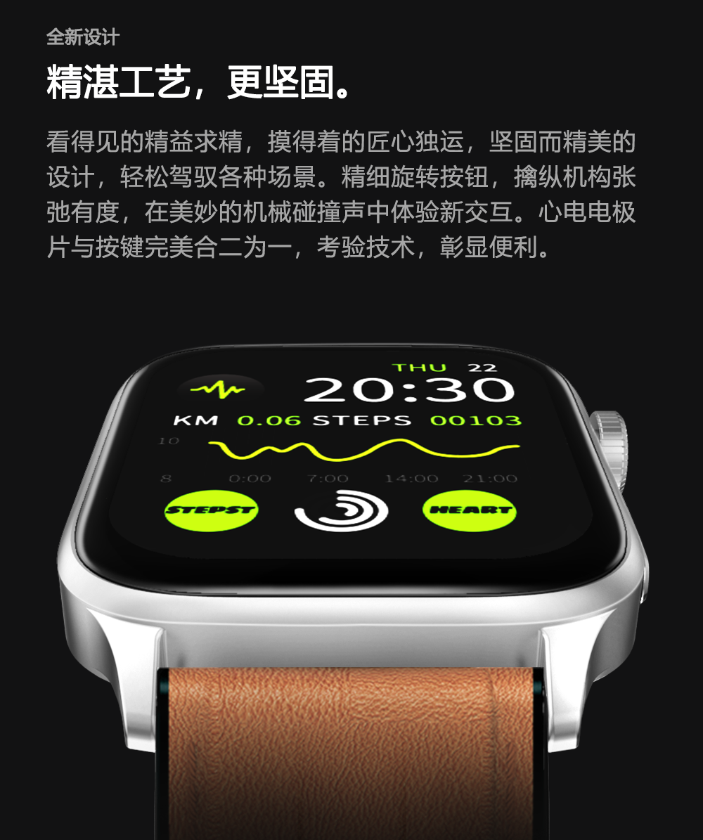 GWALK极沃客 GT22 健康型ECG心电检测款运动心率血压计步健康防水蓝牙智能手表