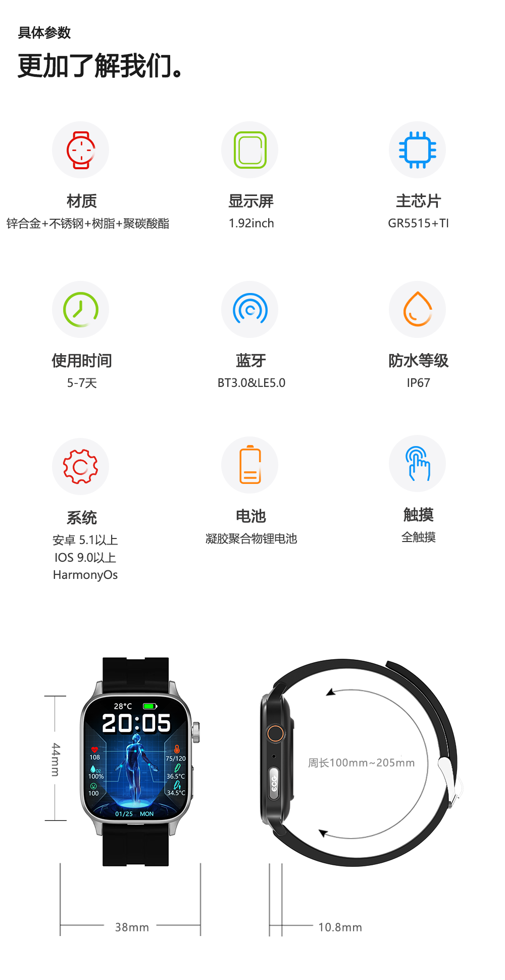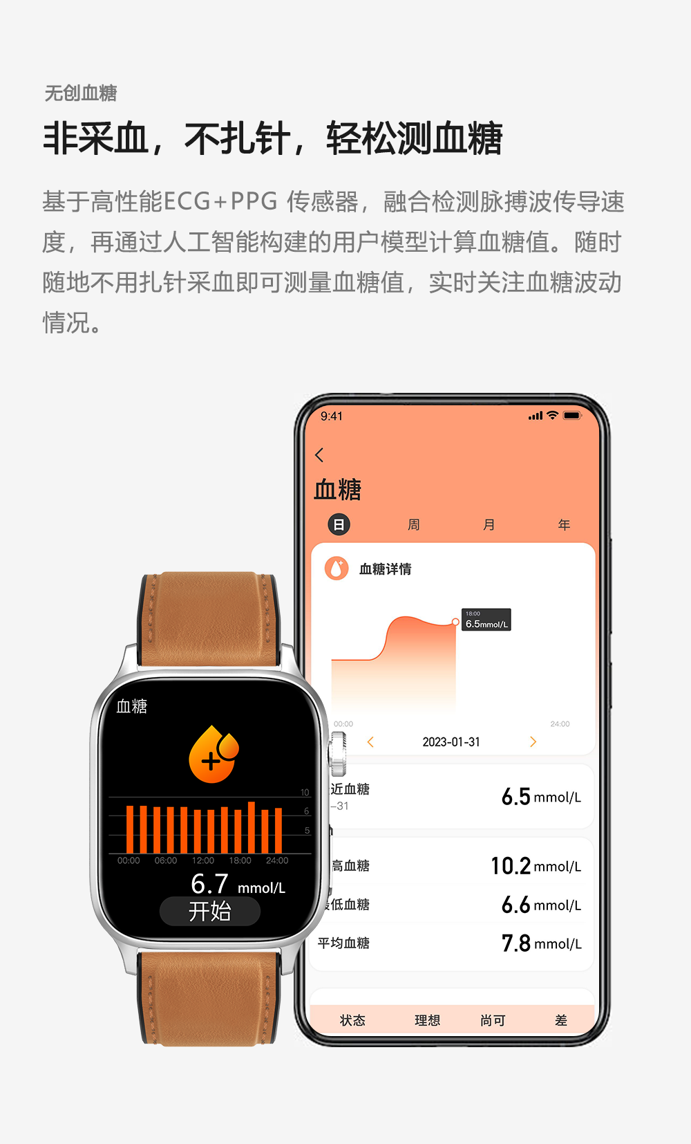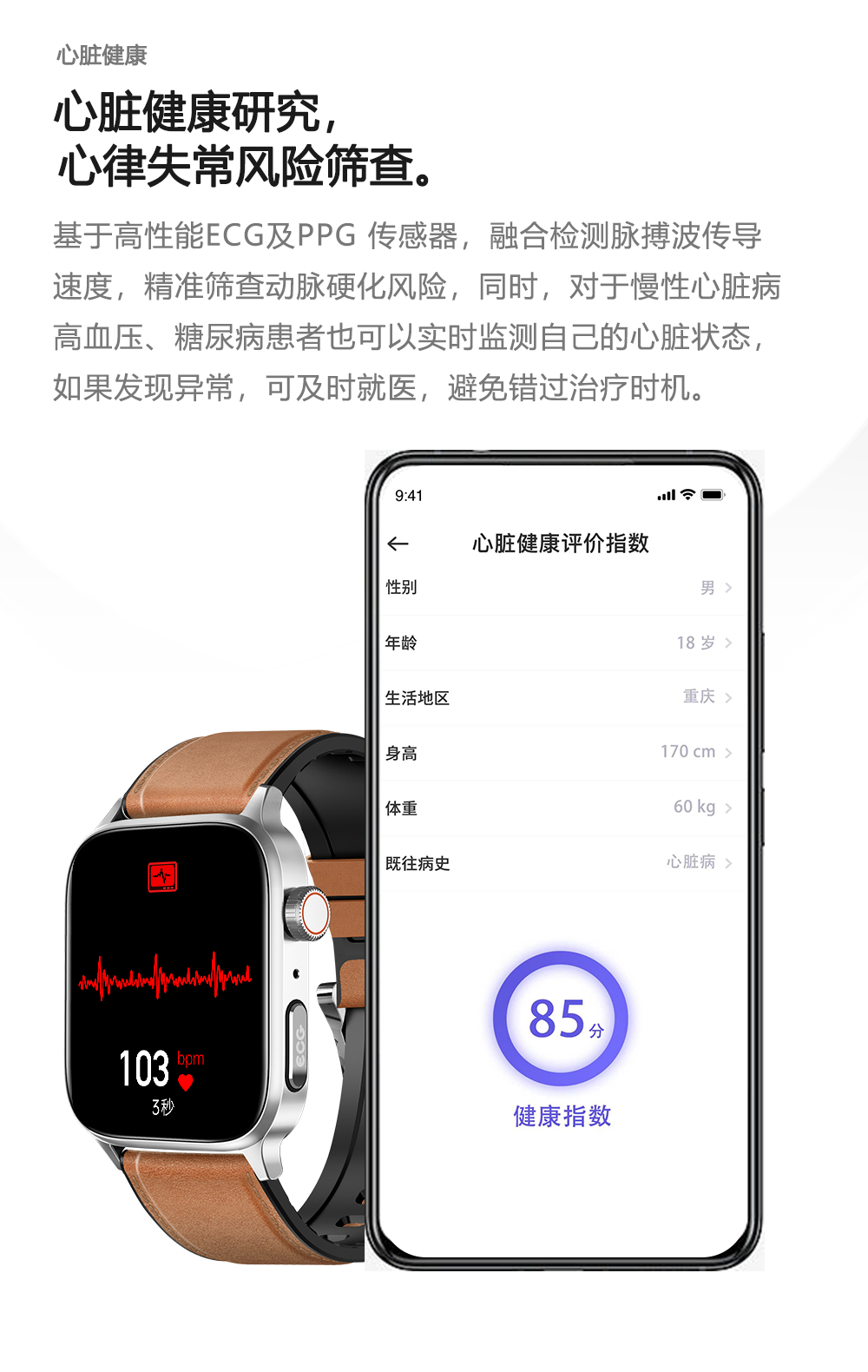 GWALK极沃客 GT22 健康型ECG心电检测款运动心率血压计步健康防水蓝牙智能手表