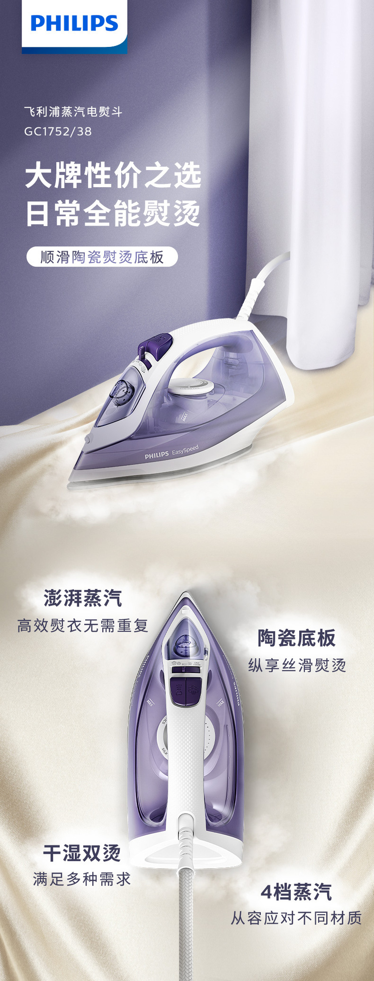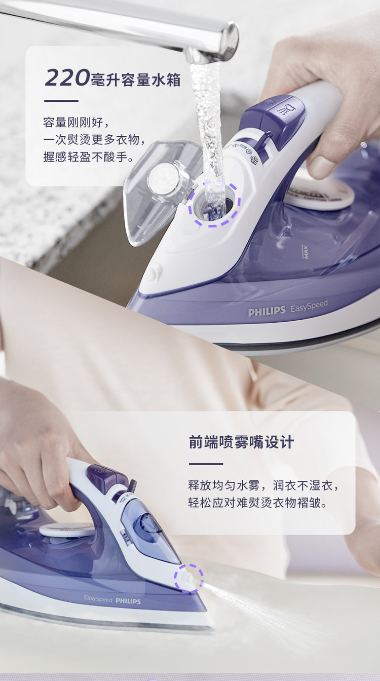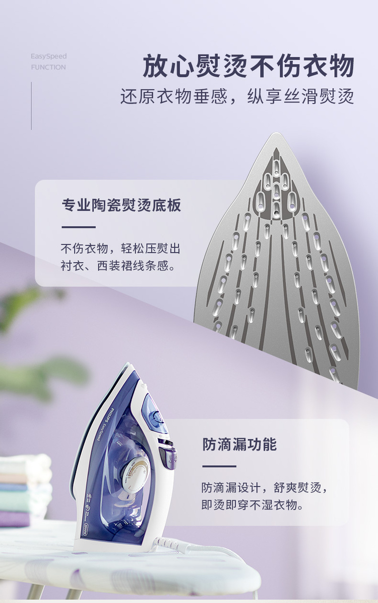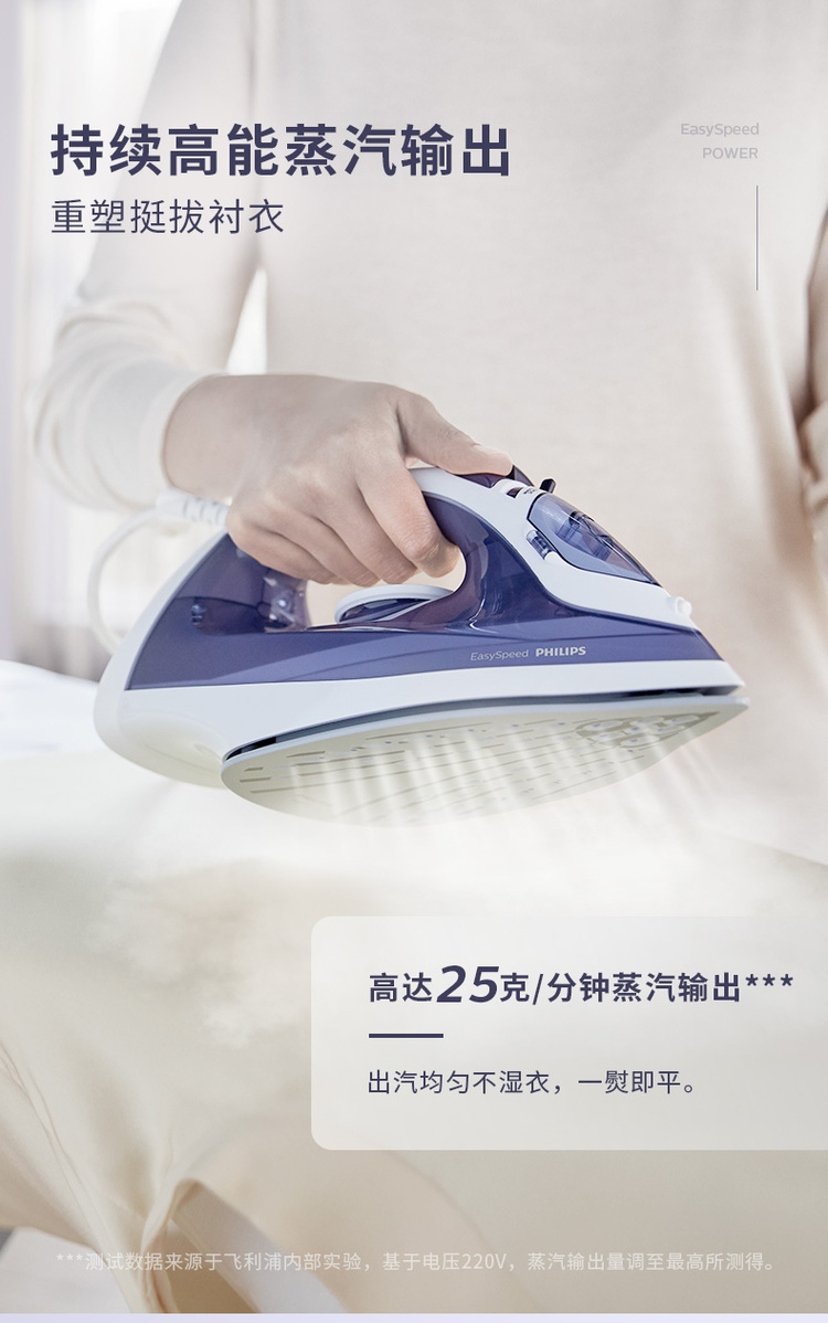 飞利浦家用蒸汽手持电熨斗老式熨烫机便携式烫衣服服装店专用平烫干湿两用宿舍迷你小型GC17522000W陶瓷底板1