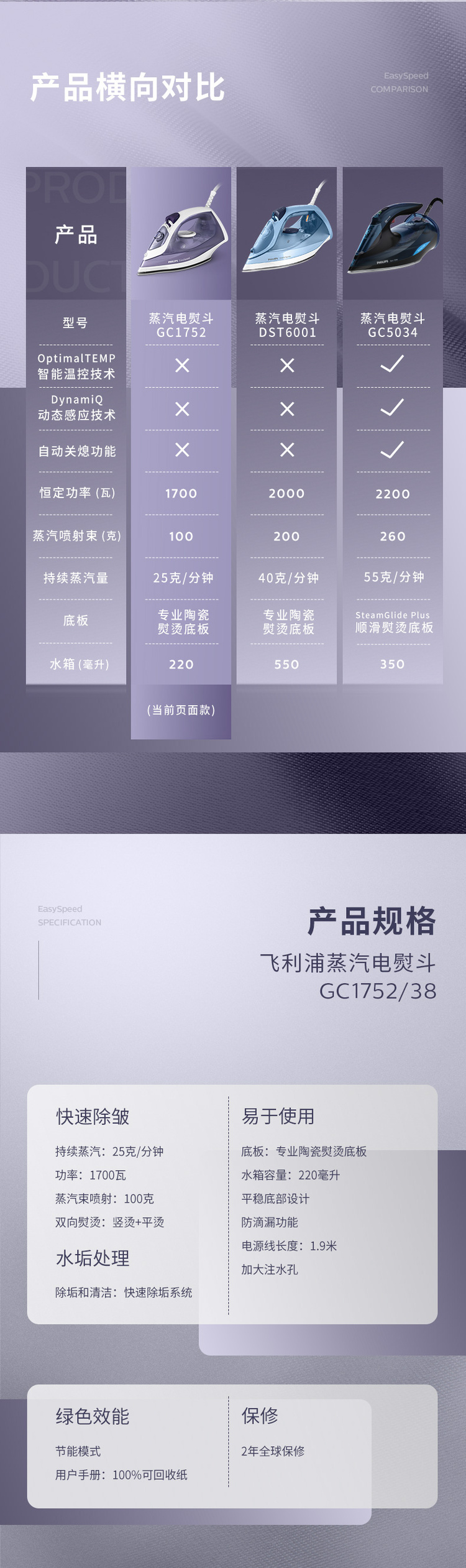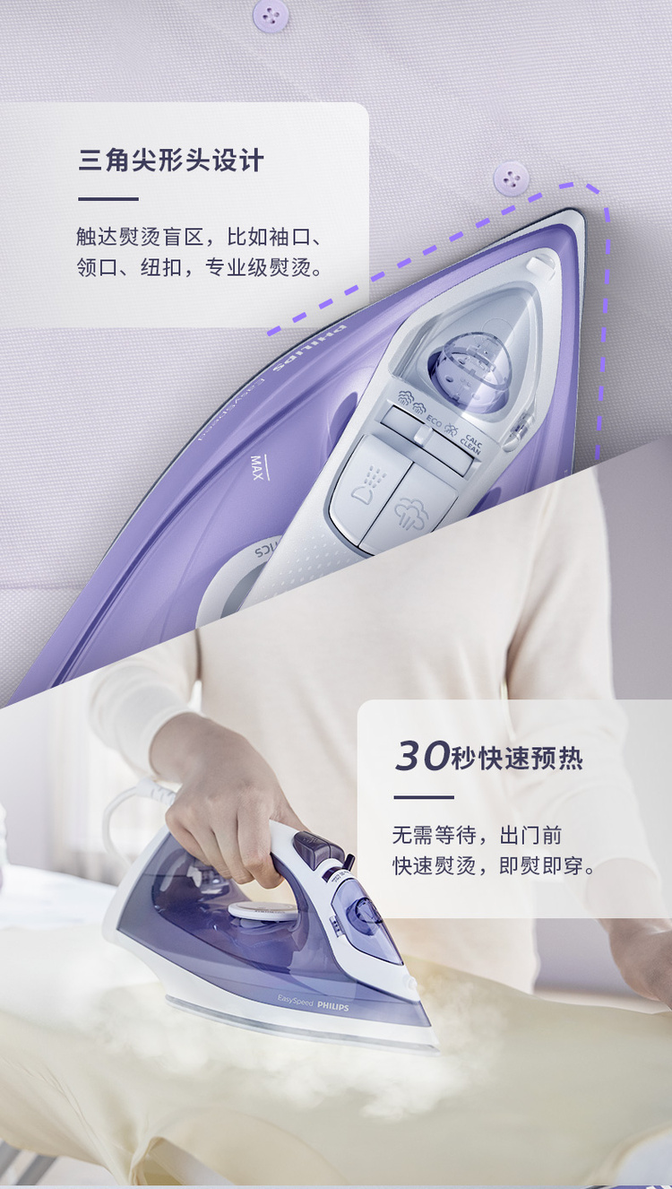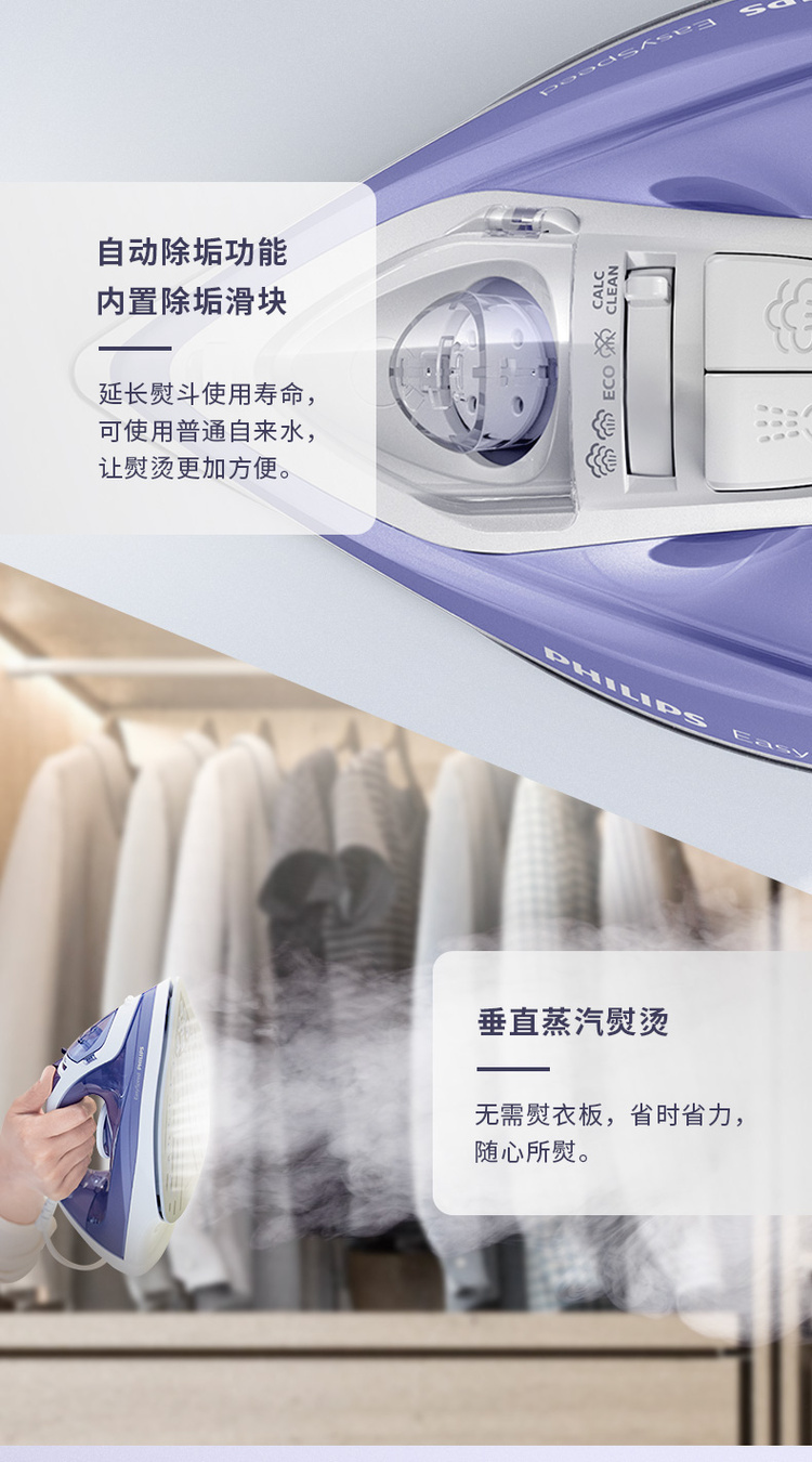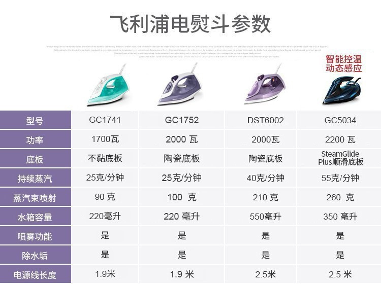 飞利浦家用蒸汽手持电熨斗老式熨烫机便携式烫衣服服装店专用平烫干湿两用宿舍迷你小型GC17522000W陶瓷底板1