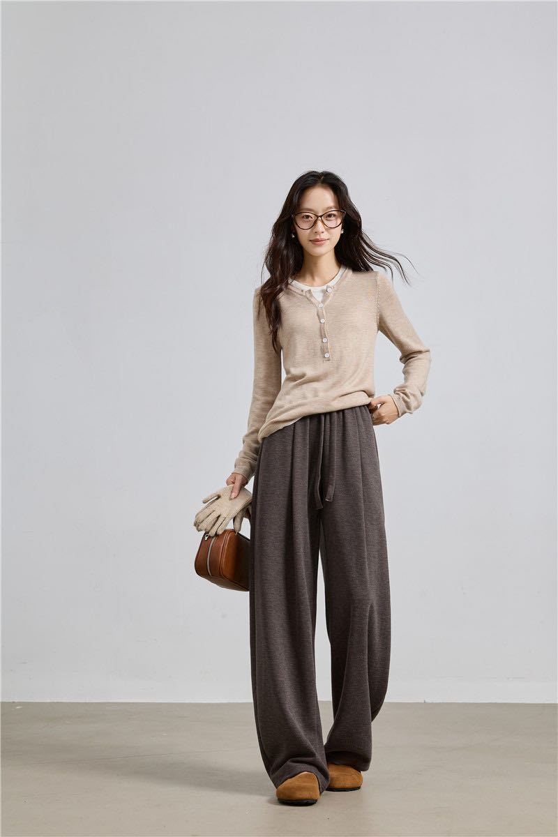 【秋季女裤丨苏禾喜 女士高腰直筒裤&休闲糯米裤】面料软糯细腻手感丰厚,宽松直筒版型,舒适垂顺不易挑腿型, 上身挺括有型,慵懒感满满,适合多种场景穿搭,解锁慵懒穿搭美学~