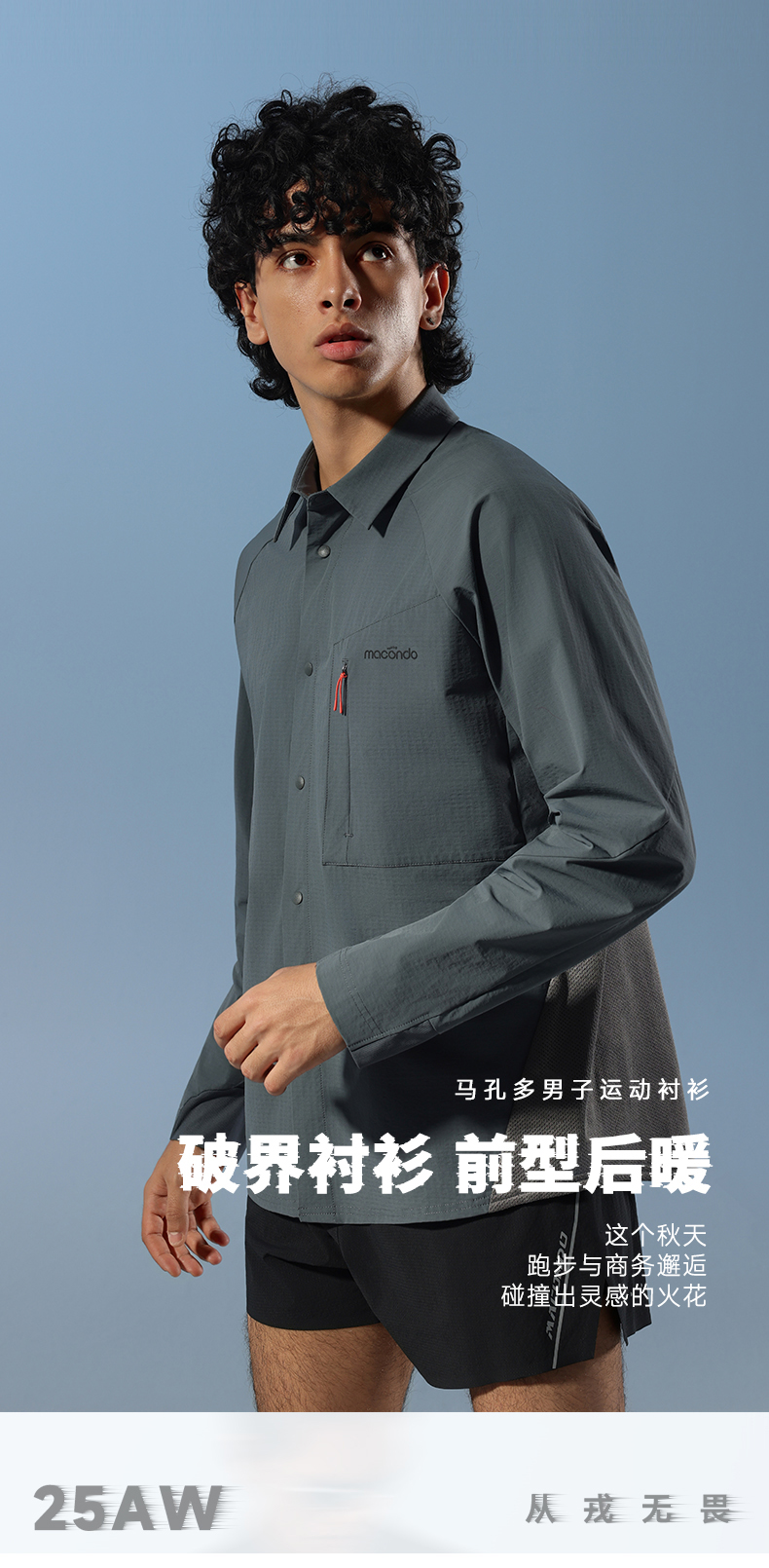 原创单品 |马孔多男子暖暖运动衬衫吸湿速干后片空气胶囊网布衬衫