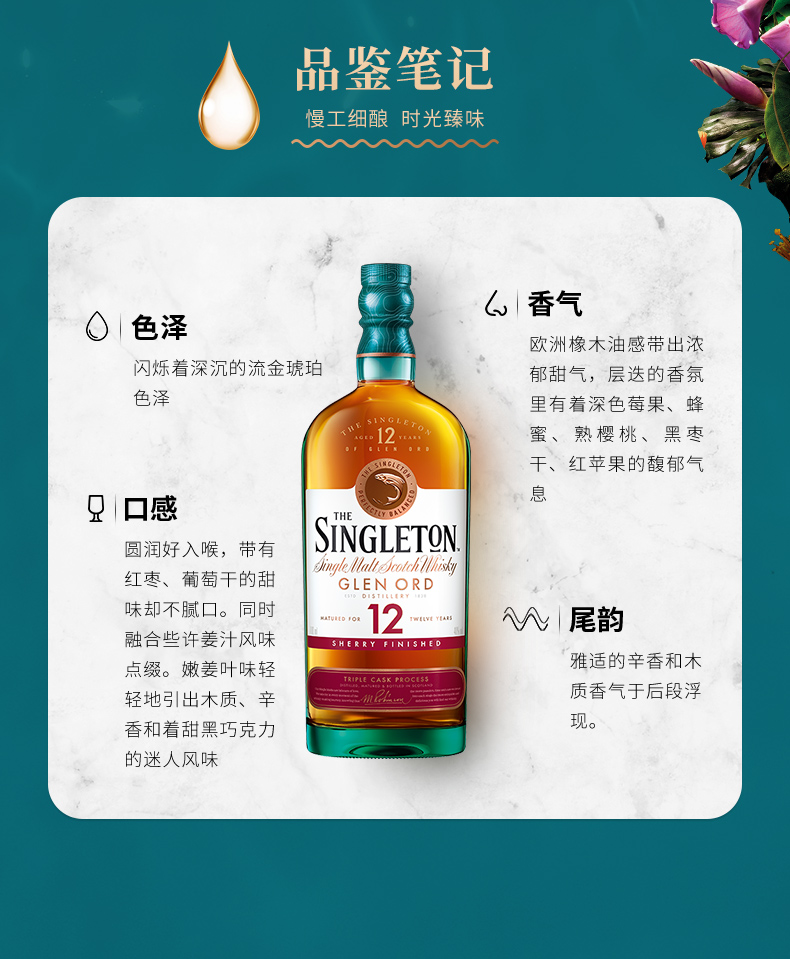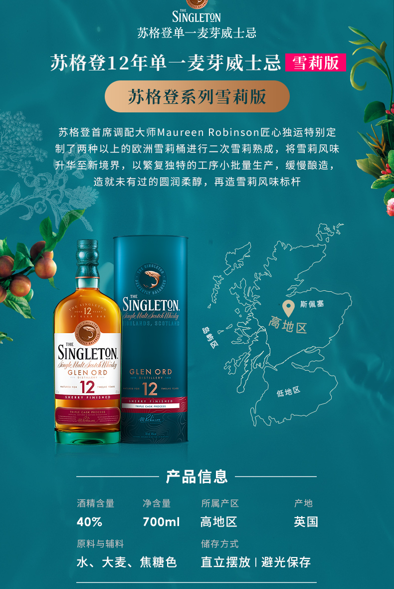 苏格登12年单一麦芽苏格兰威士忌雪莉版 700ml