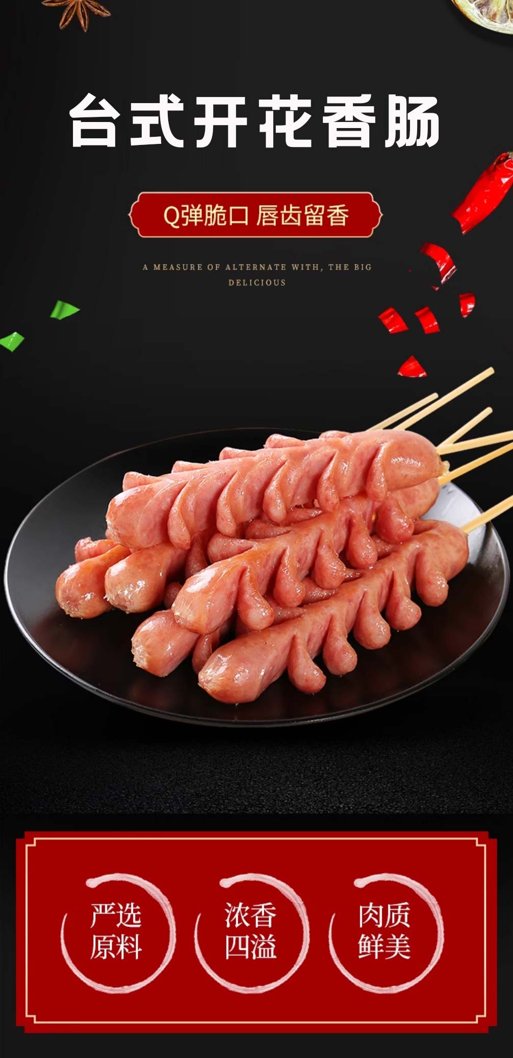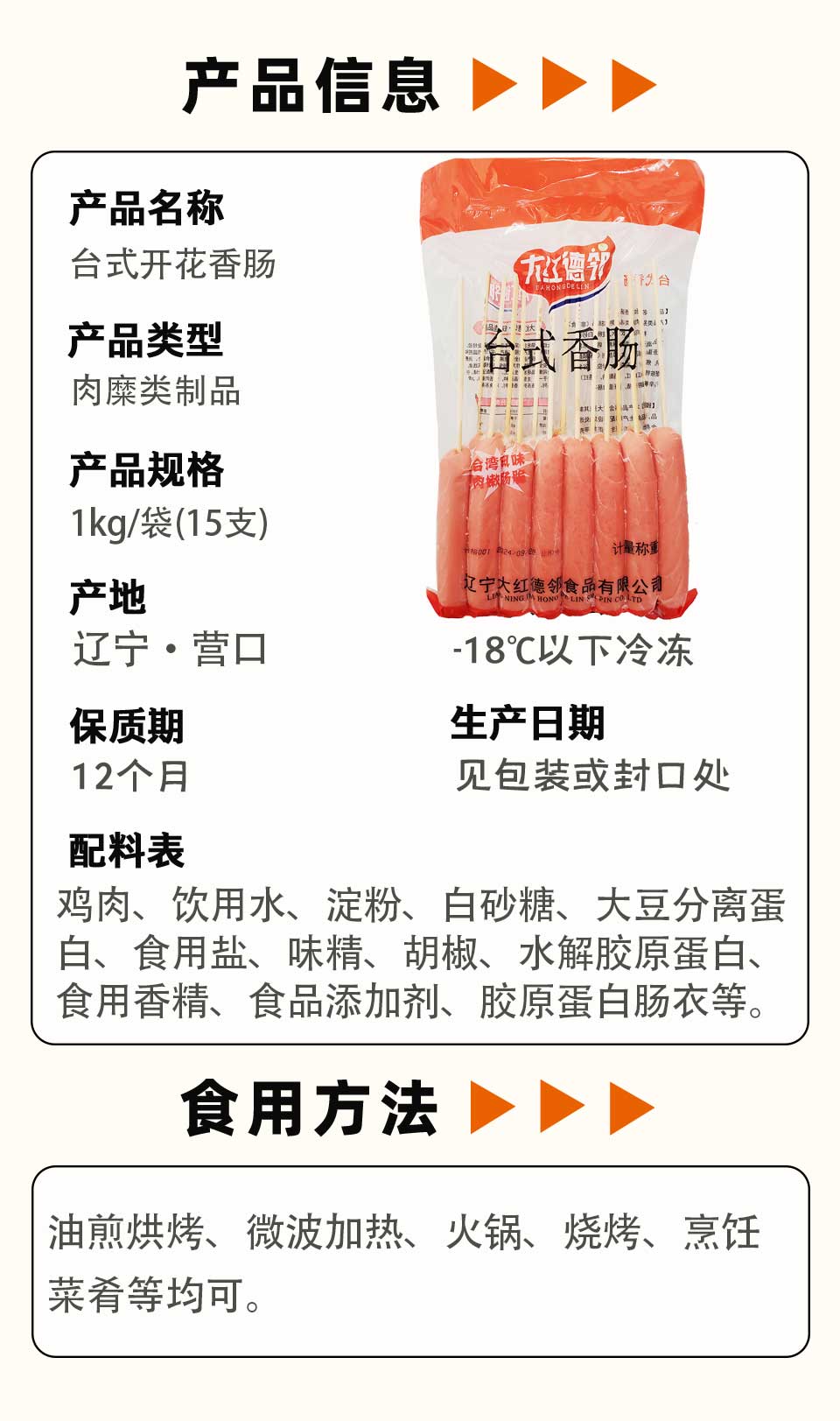大红德邻台式开花香肠 1kg/袋(15支) 10袋/件