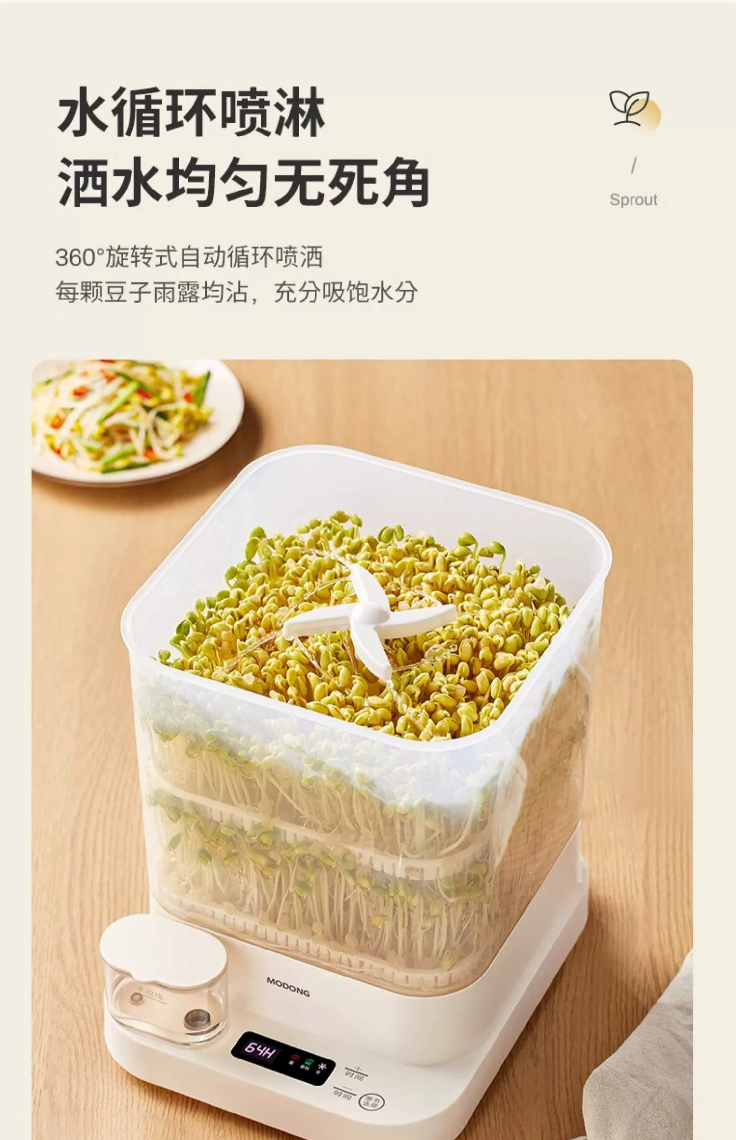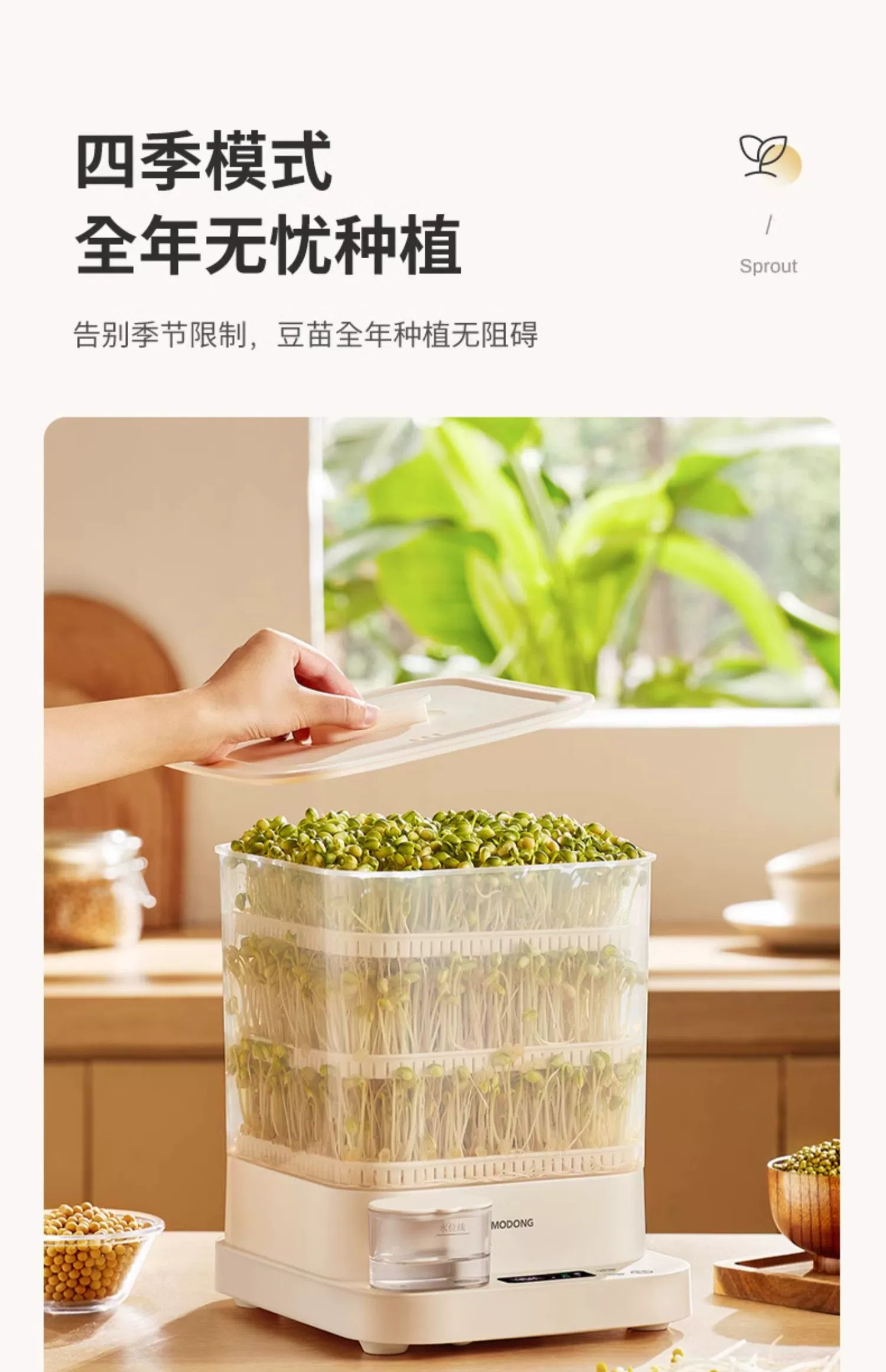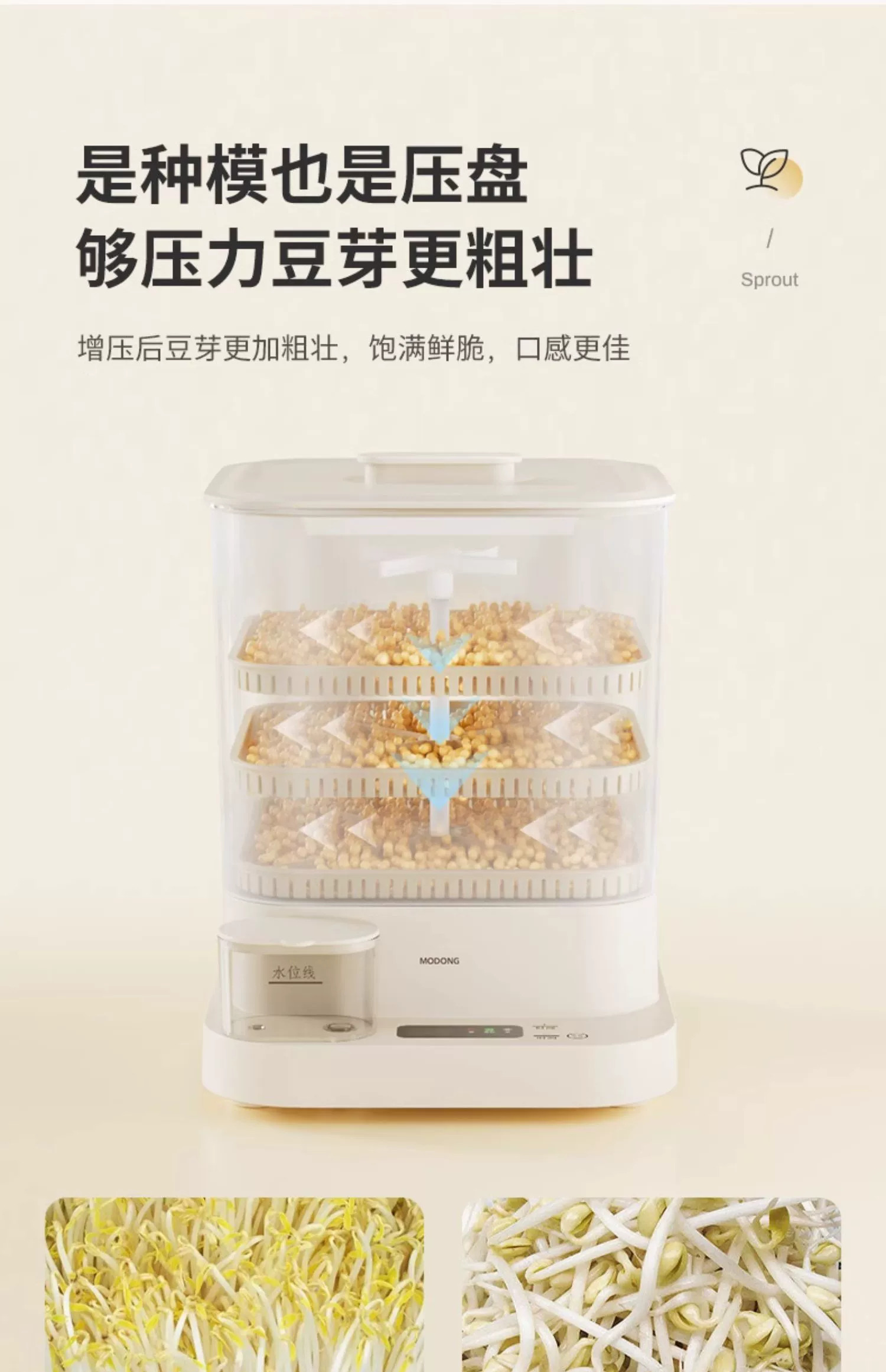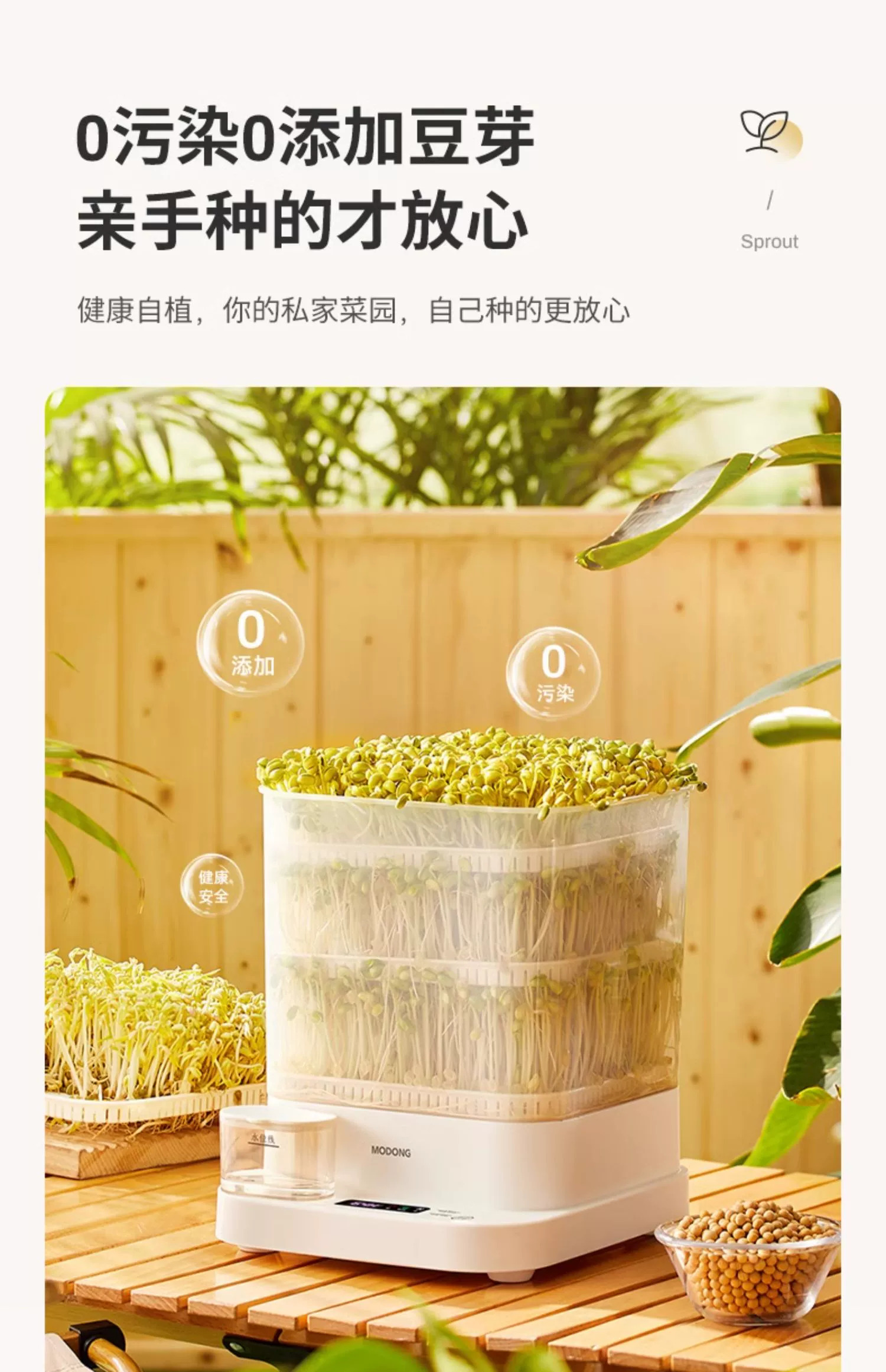 摩动豆芽机家用全自动智能发芽豆牙盆神器自制小型绿豆催芽苗灌盆