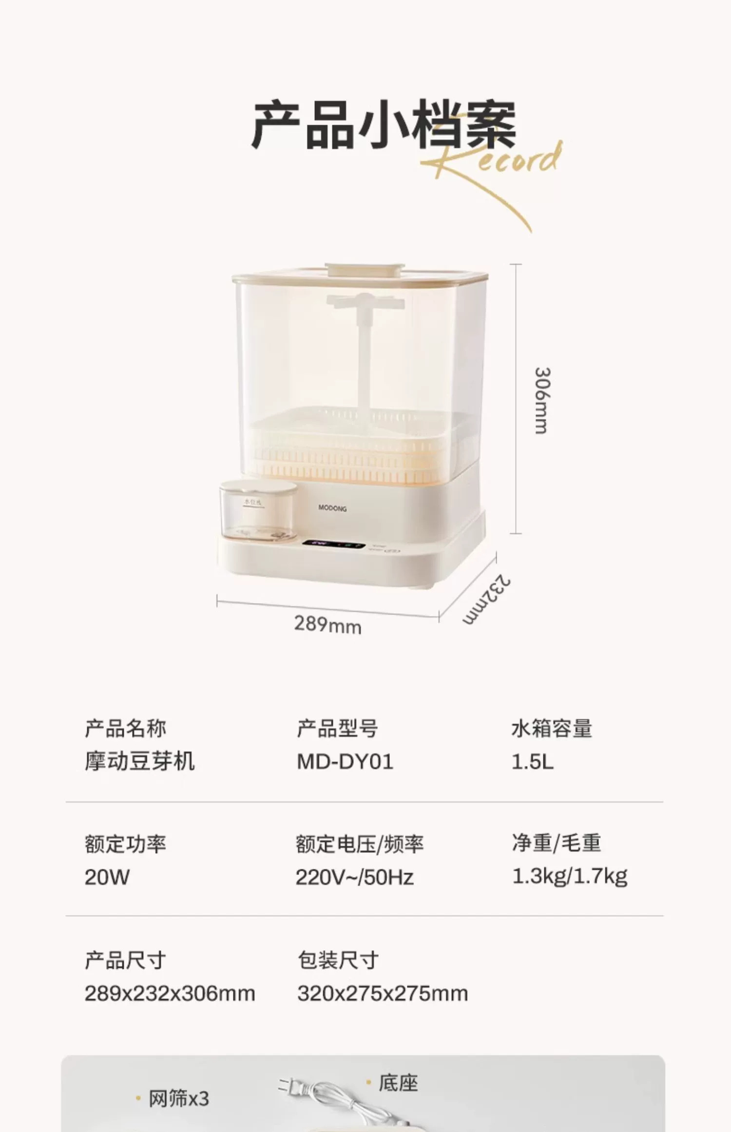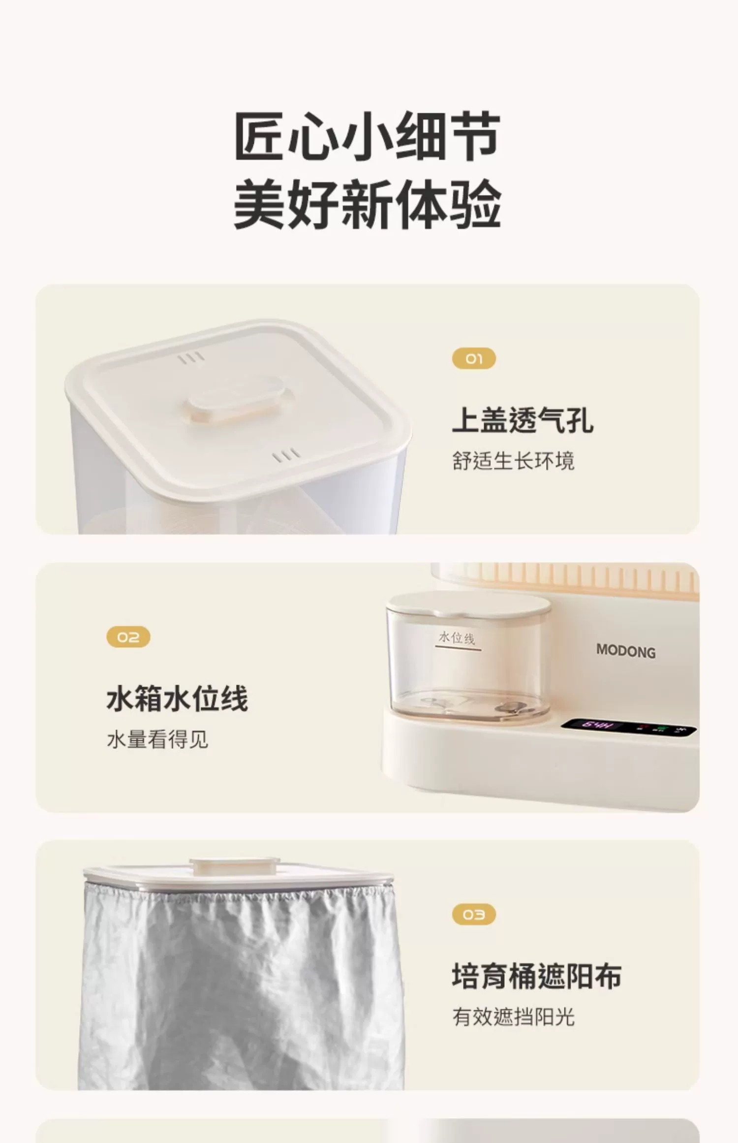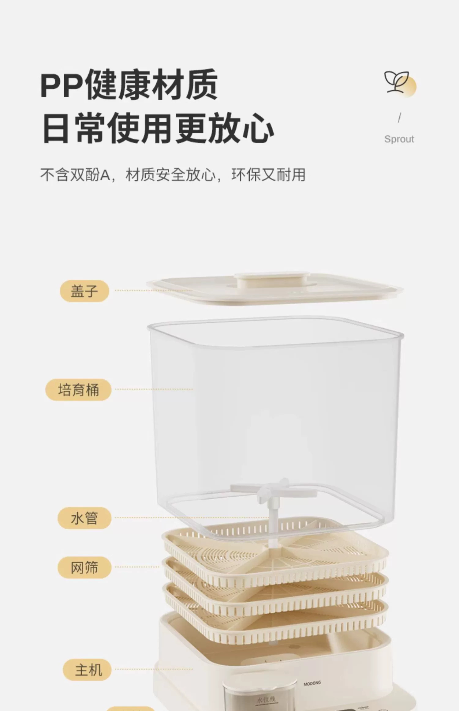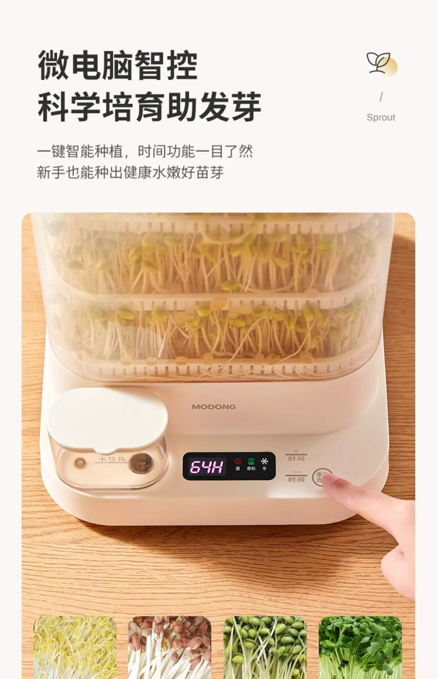 摩动豆芽机家用全自动智能发芽豆牙盆神器自制小型绿豆催芽苗灌盆