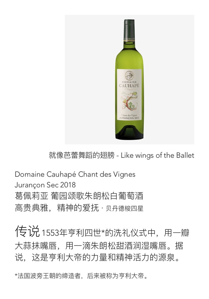 葛佩莉亚 葡园颂歌朱朗松白葡萄酒 Domaine Cauhapé Chant des Vignes Jurancon Sec 2018