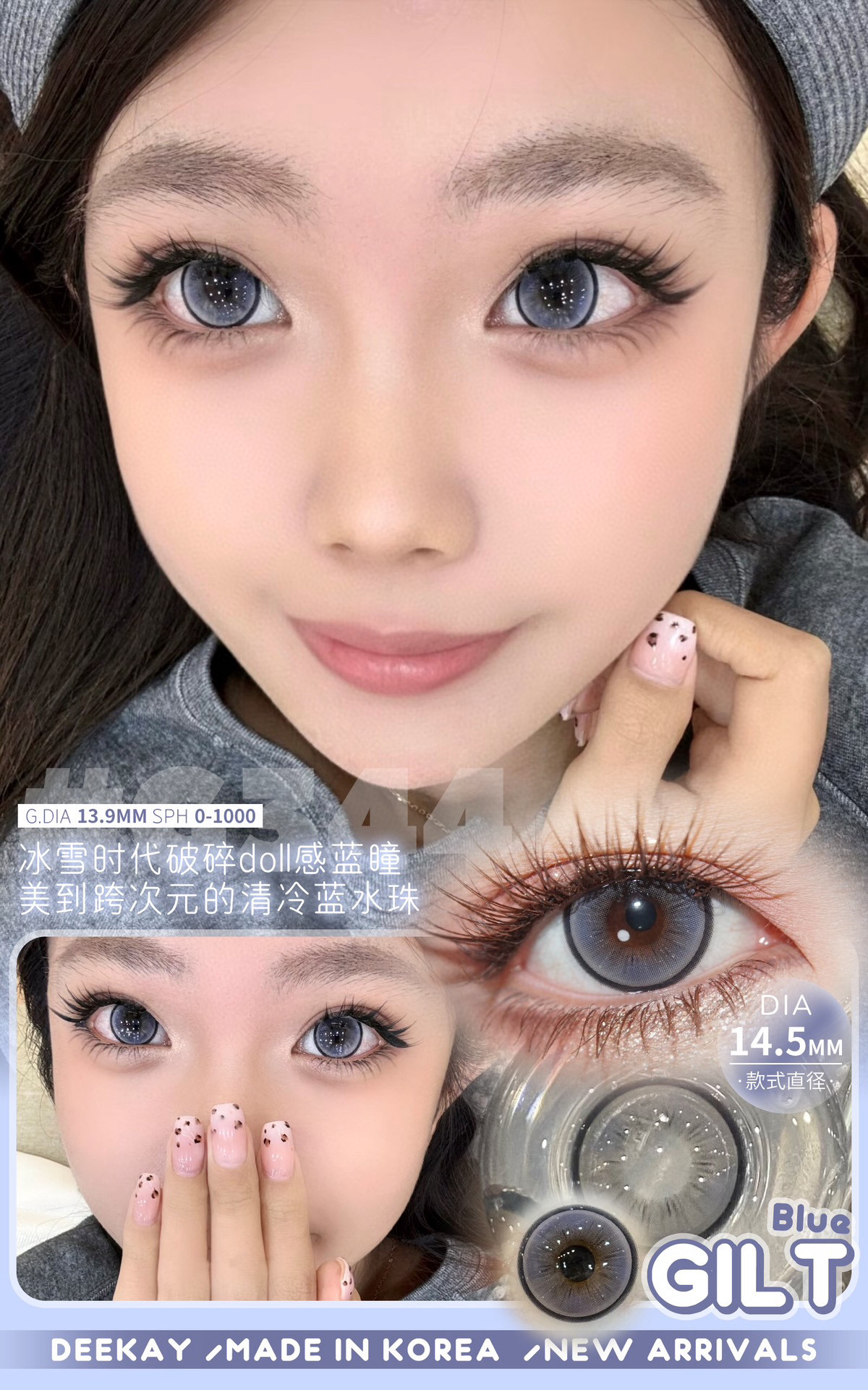 半年抛 G344 DeeKay / 大直径14.5 着色13.9参考值 / ( 同品牌两幅 三副会更划算 可以咨询客服或在本商城搜索deekay全系列)冰蓝色美瞳 三明治工艺