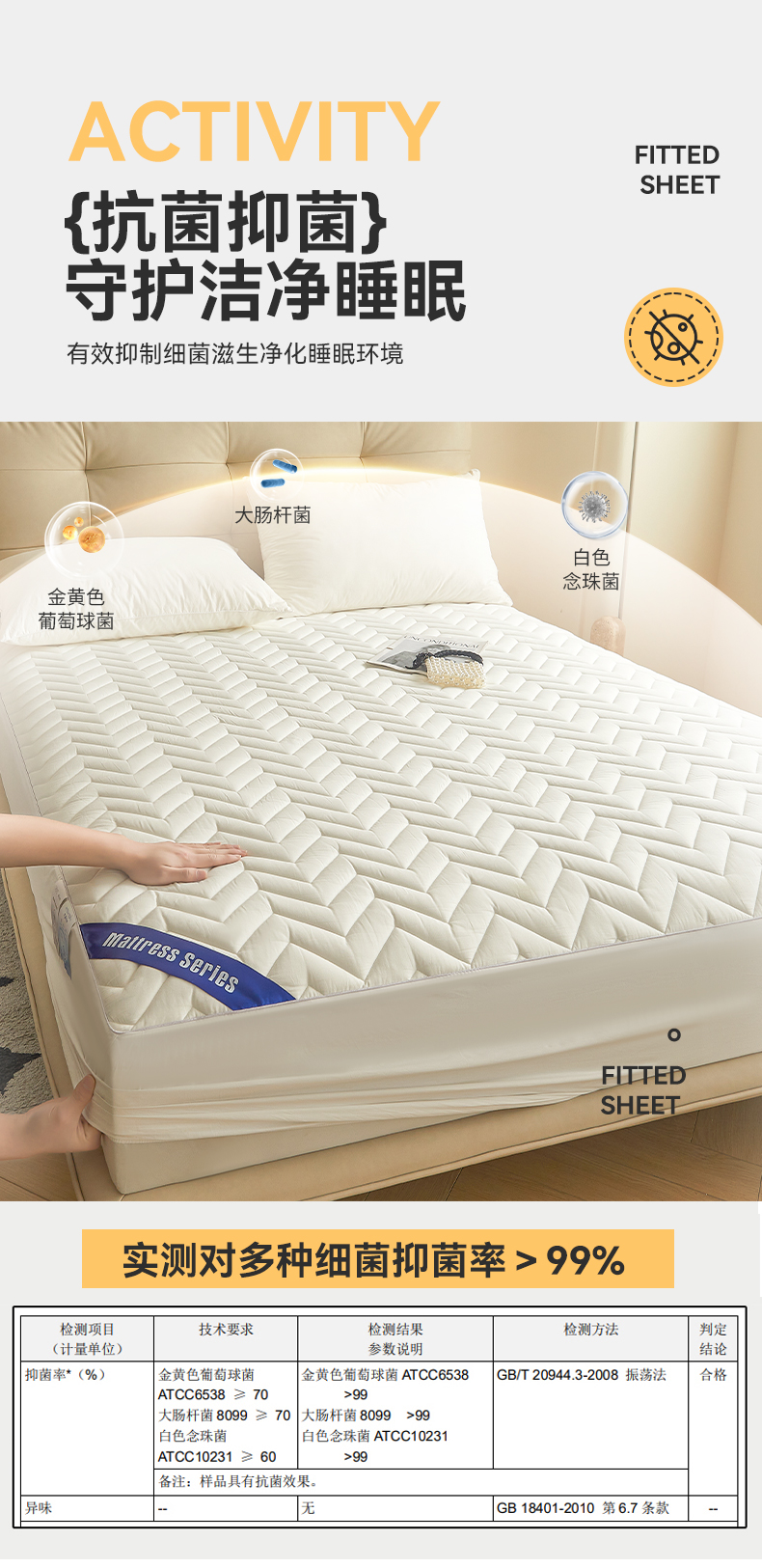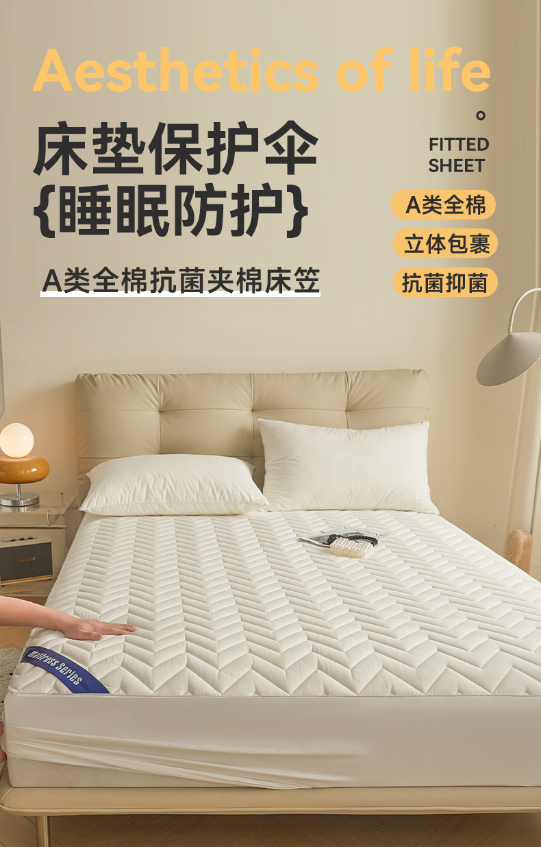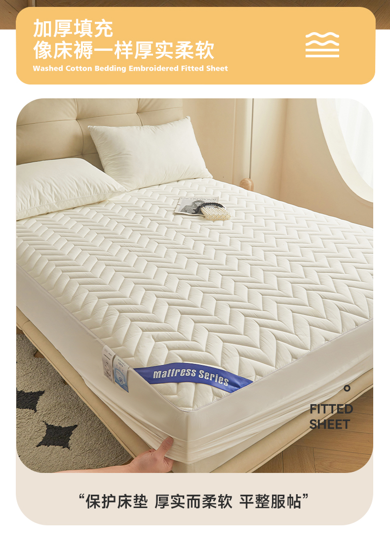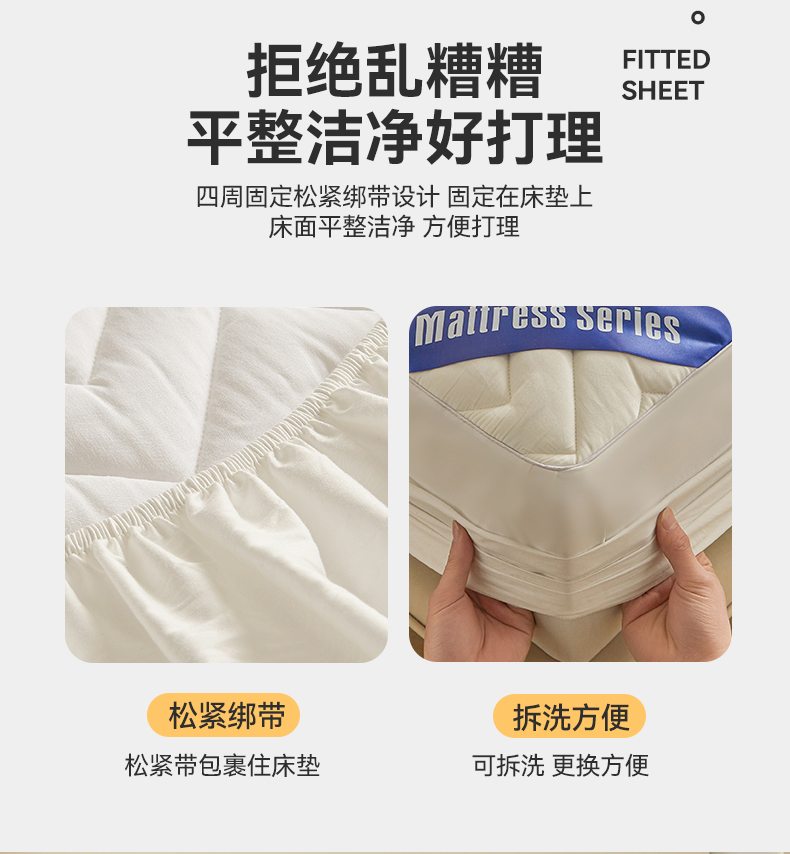自然醒全棉波纹透气床笠床褥垫套家用卧室防滑褥子宿舍垫被席梦思保护垫薄软垫LN