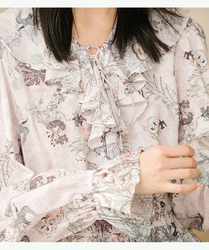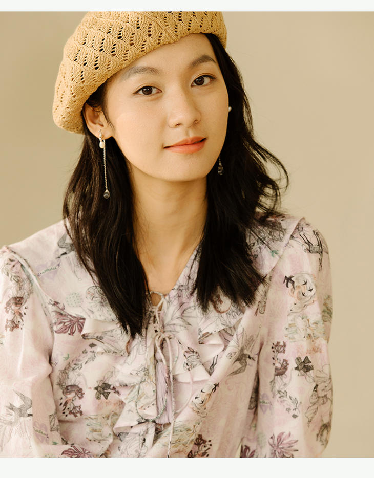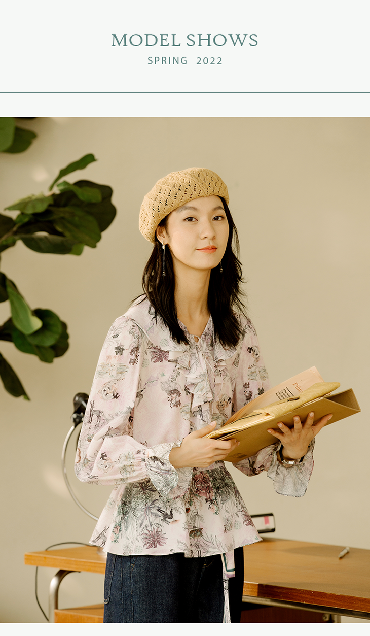 丽迪莎复古原创文艺印花图案纯棉小衫KK13X3135